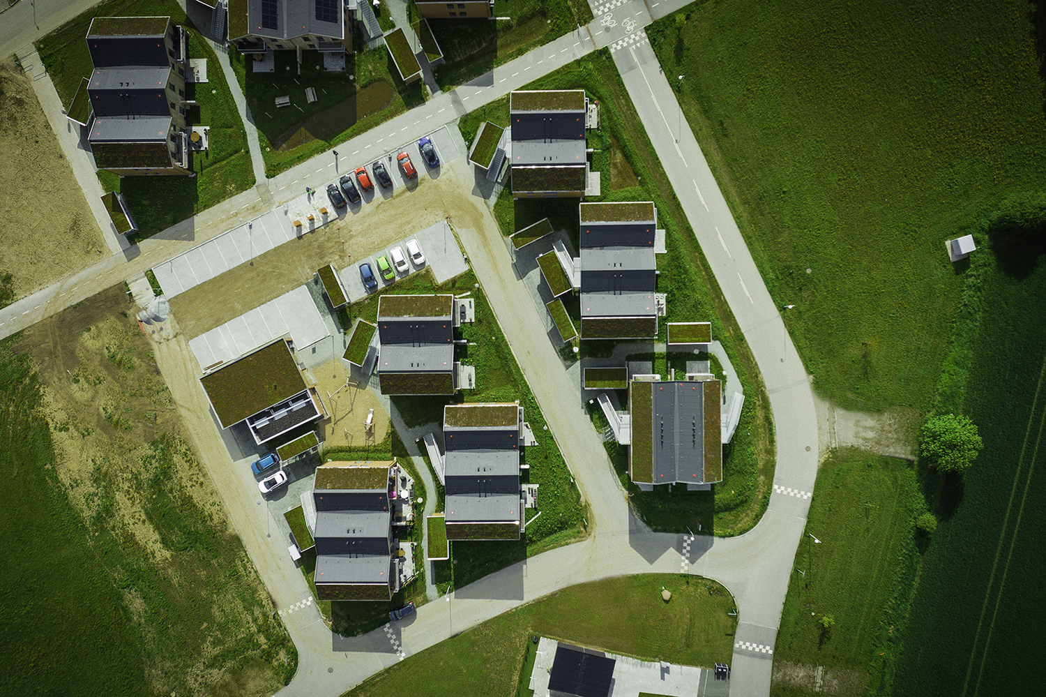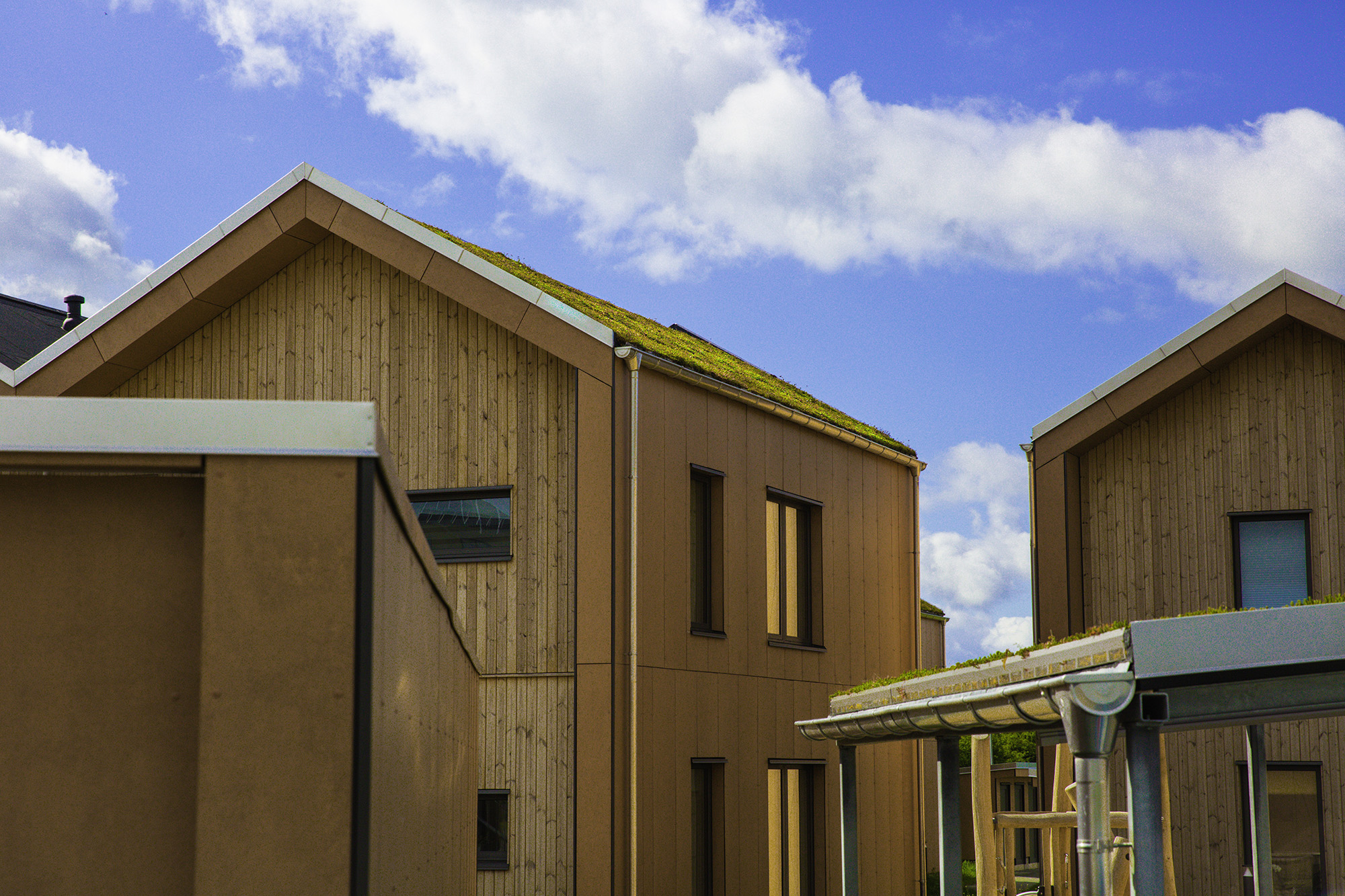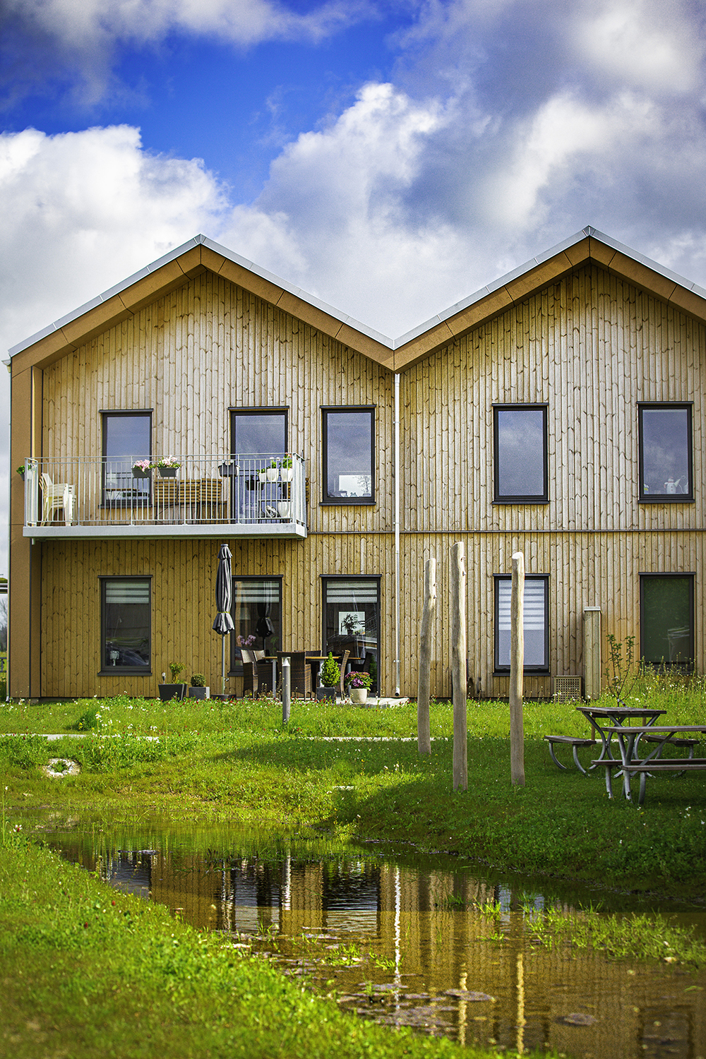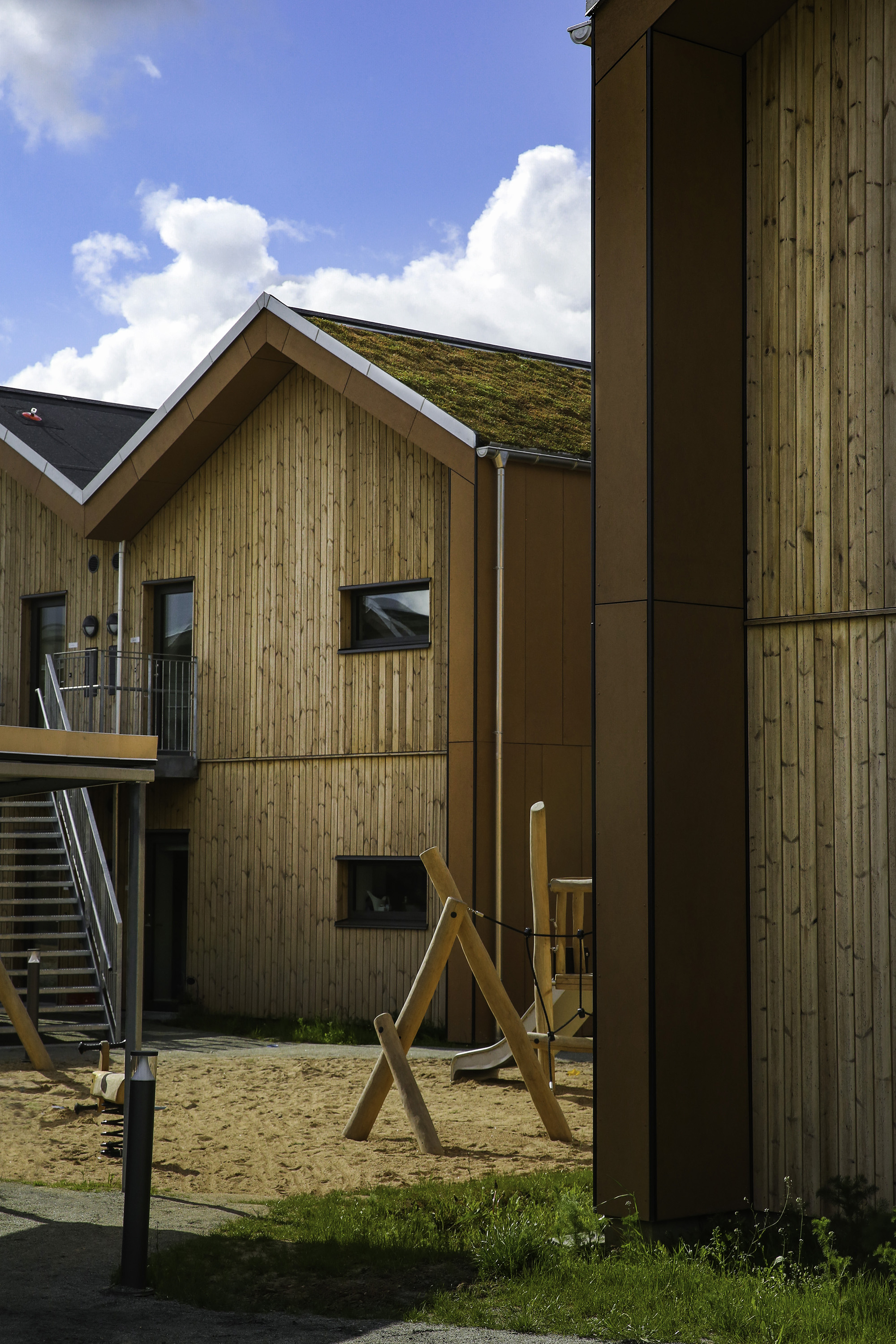 Bæredygtige almene boliger, der passer ind i det åbne landskab i naturen. Og med en arkitektur, der fremmer fællesskab og tryghed. Åbne fælles friarealer og hyggelige gårdrum giver muligheder for legepladser, bålpladser og boldspil.