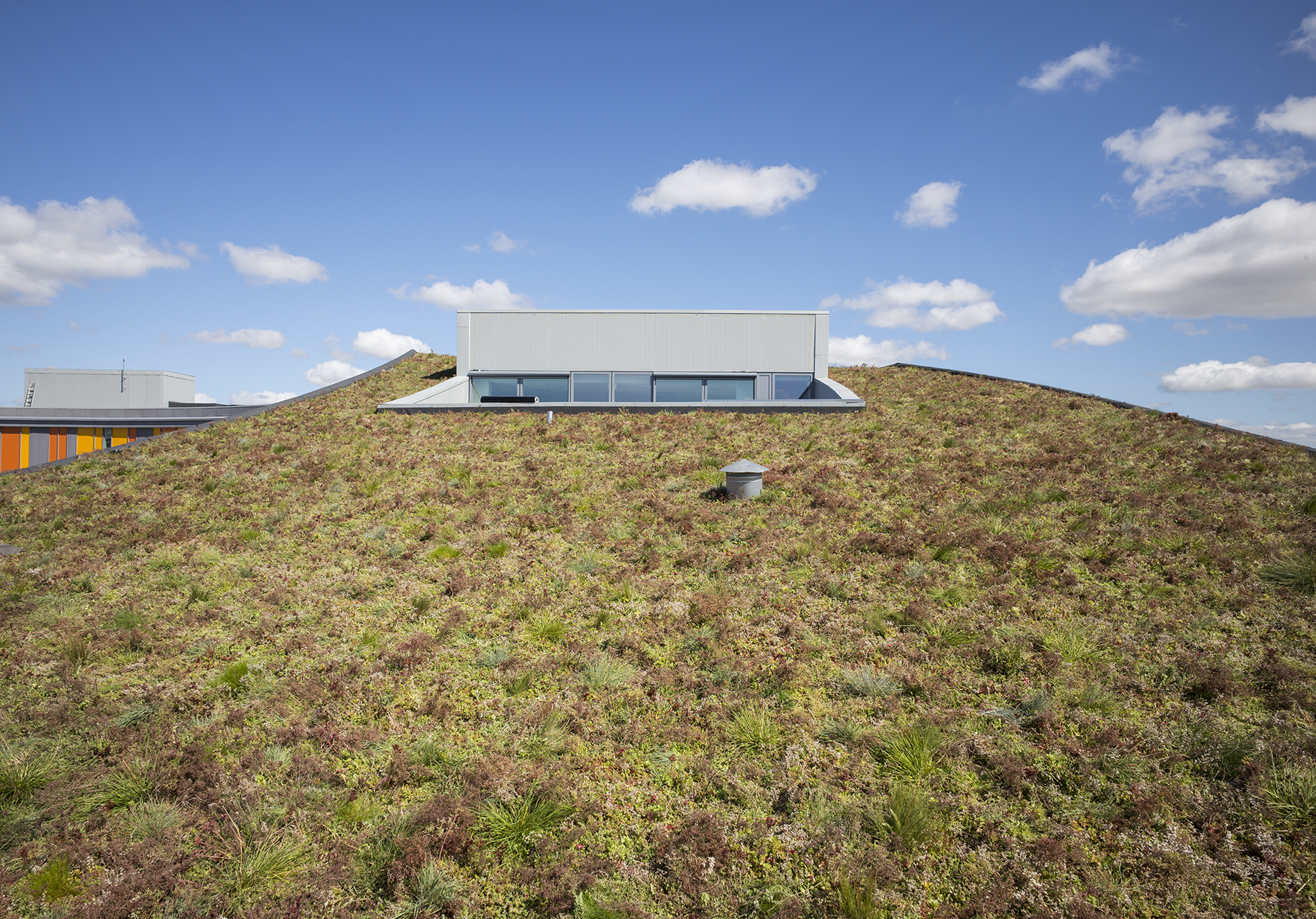 - Det produkt, der er det dyreste i dag, kan sagtens være det billigste på længere sigt. Inden for DGNB-certificeringen opererer man med 50 års levetid, og et grønt tag, der kan holde hele perioden, er en langt mere bæredygtig investering end et billigere tag, der holder max 20 år. DGNBs regnemodul, LCC, omregner alle investeringer over en 50-årig periode om til nutidsværdi - og så kan det billigere tag vise sig at være over tre gange så dyrt. Derfor var valget af tagløsning enkelt, siger Ivan Nyborg, der også fremhæver lave driftsomkostninger som et væsentligt parameter.