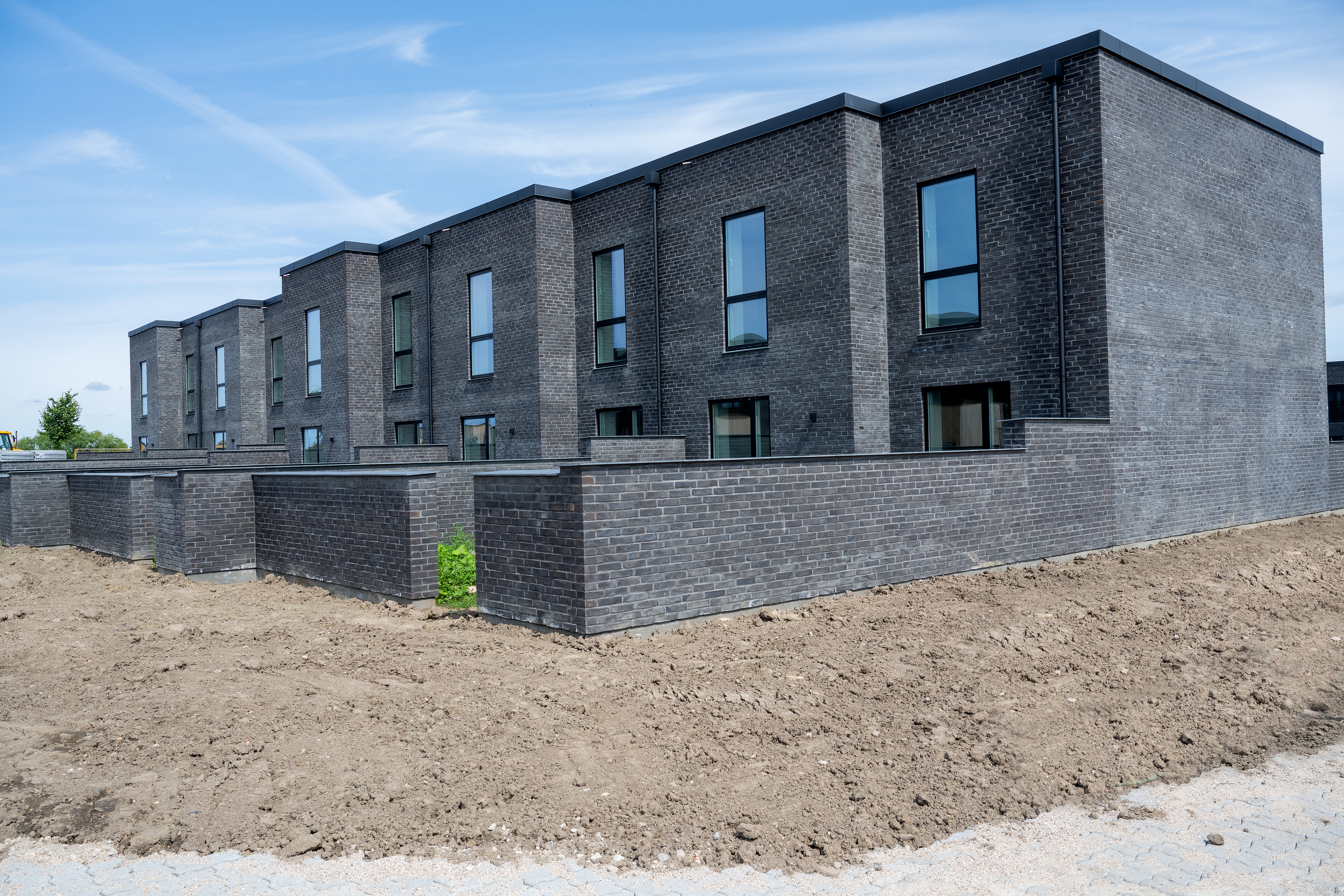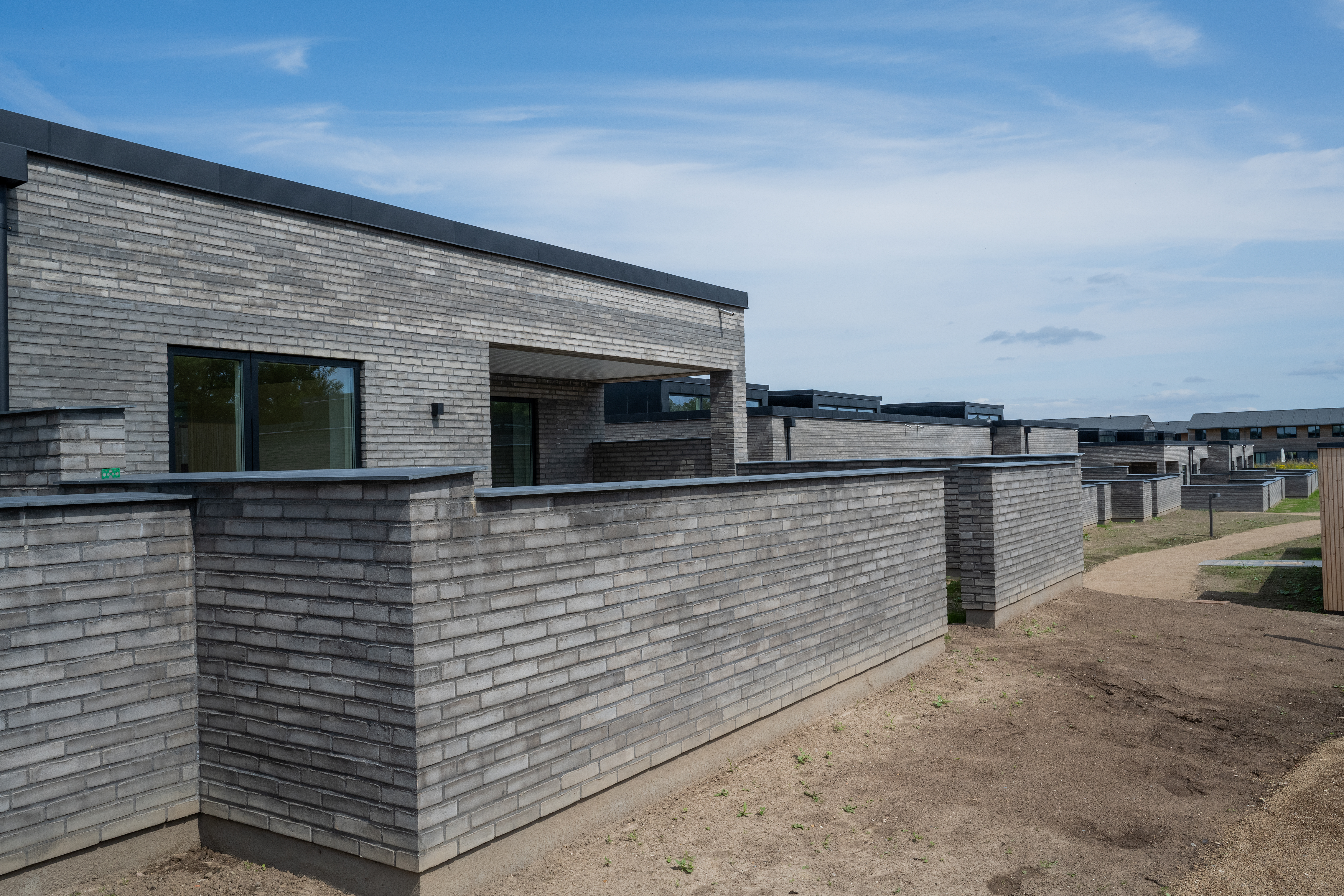 På samme tid giver havemure privatliv og varierede spring i højden. Materialerne er stemt af farvemæssigt.
