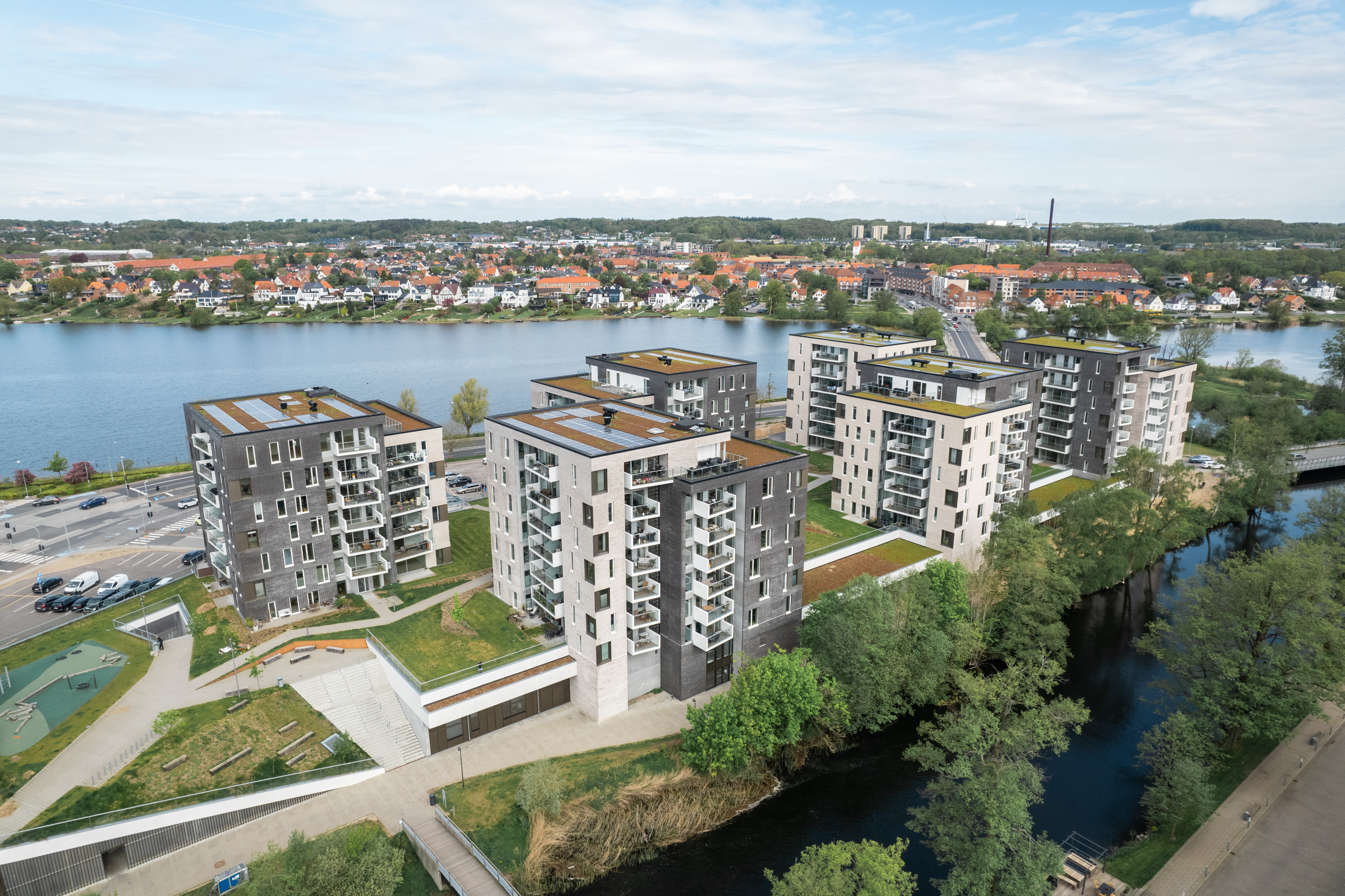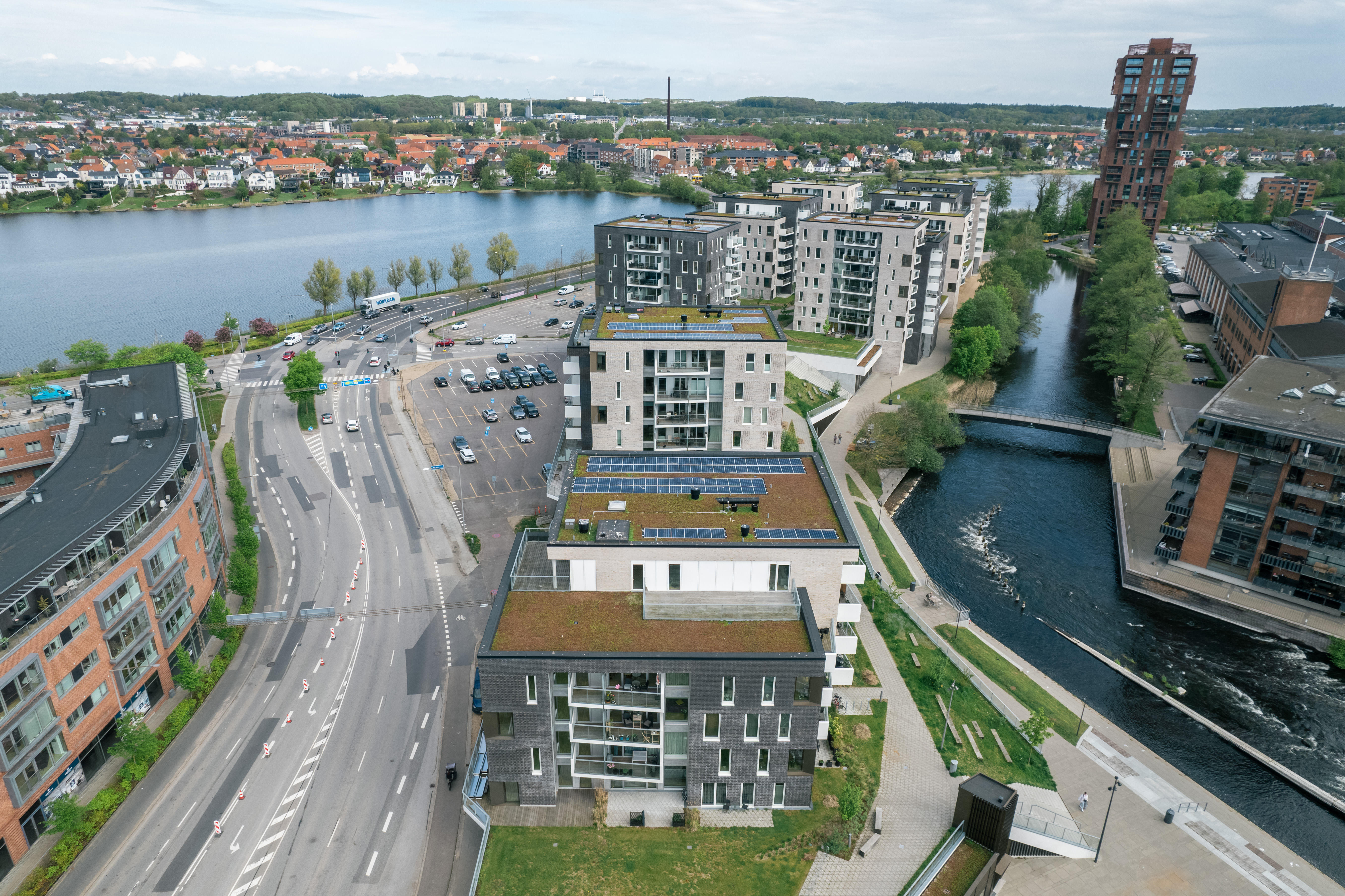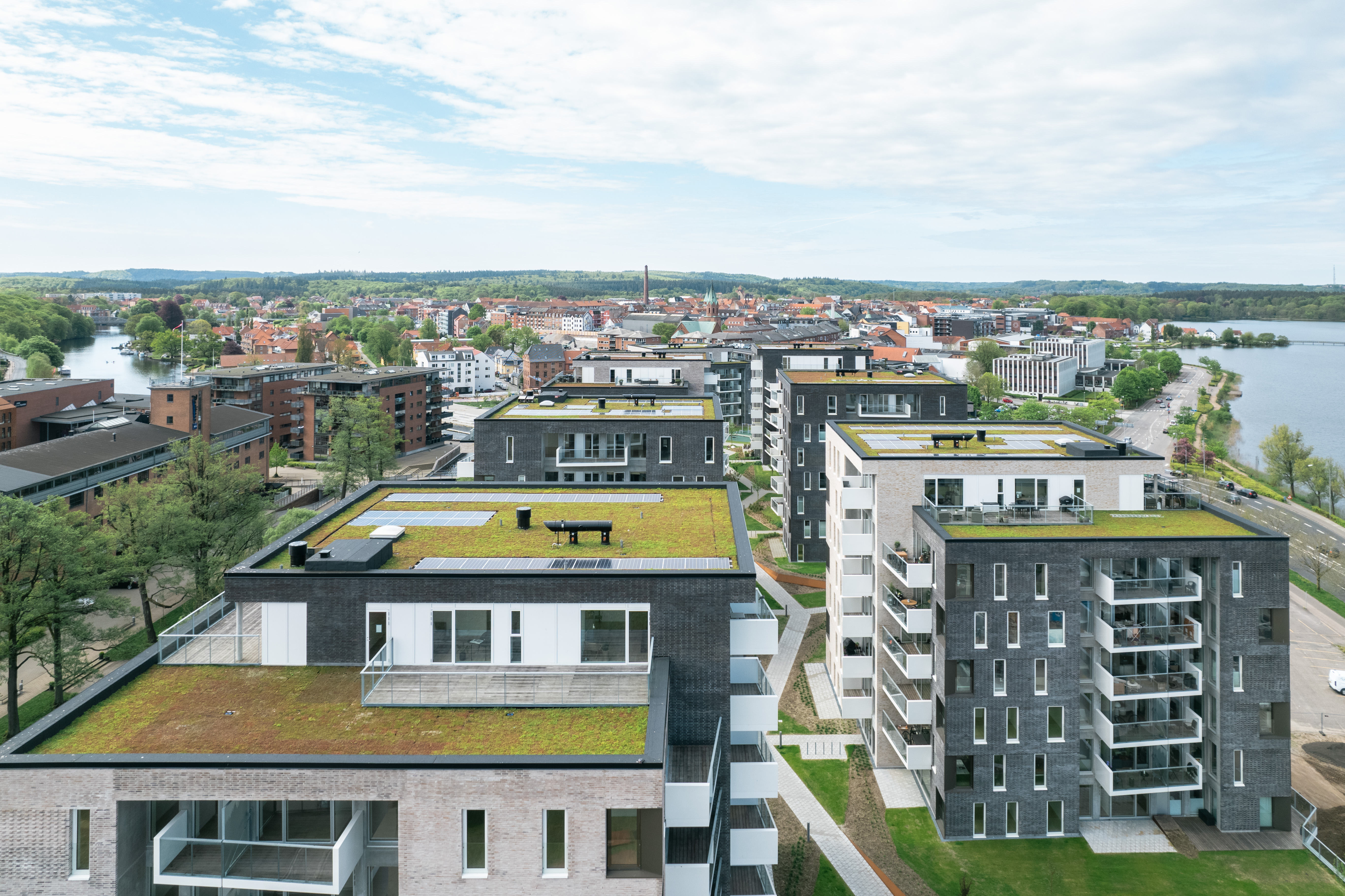 Bygget af gode og holdbare materialer indpasser bebyggelsen sig smukt i byen og den omgivende natur præget af Silkeborgs søer og enestående naturområder.