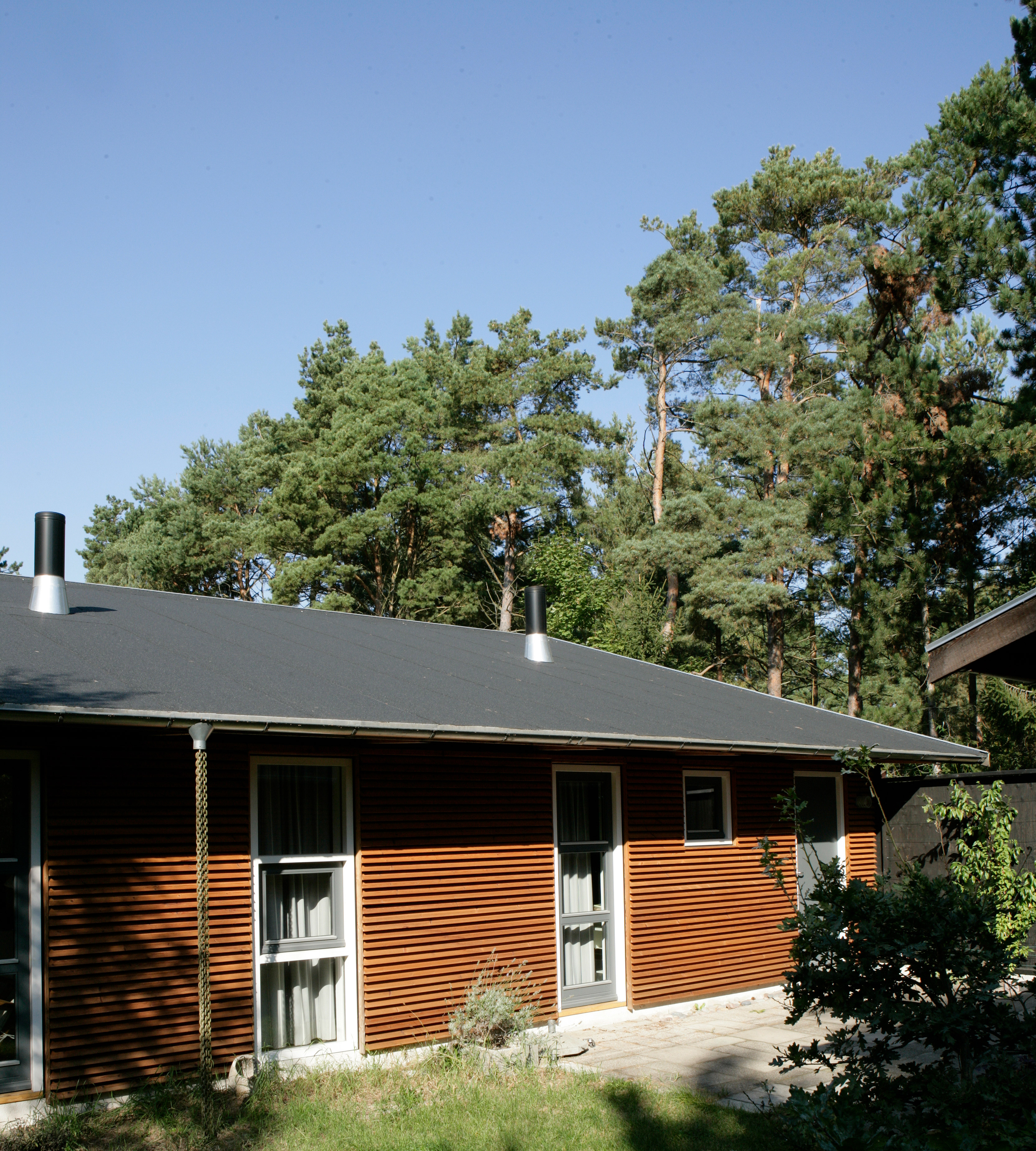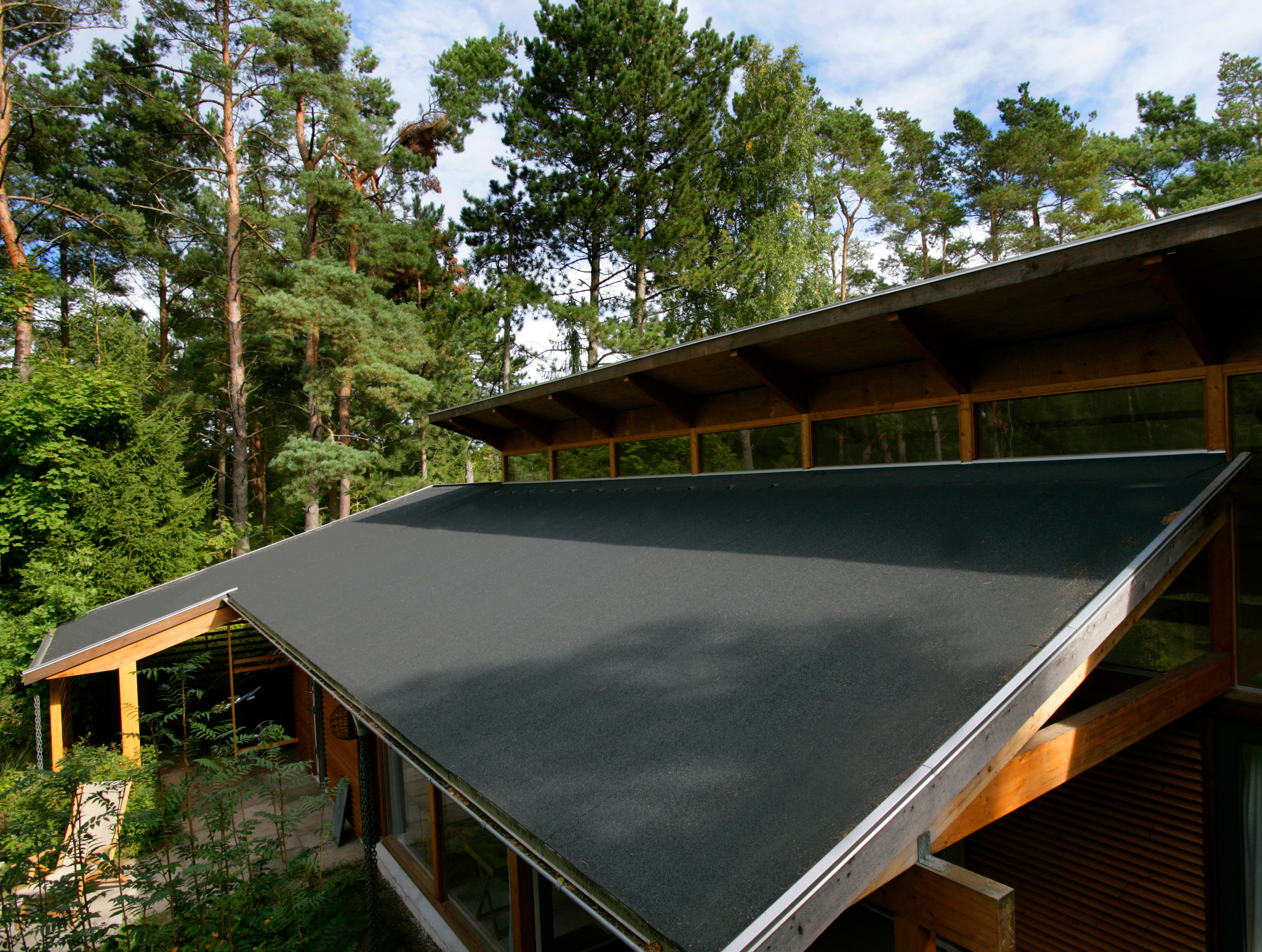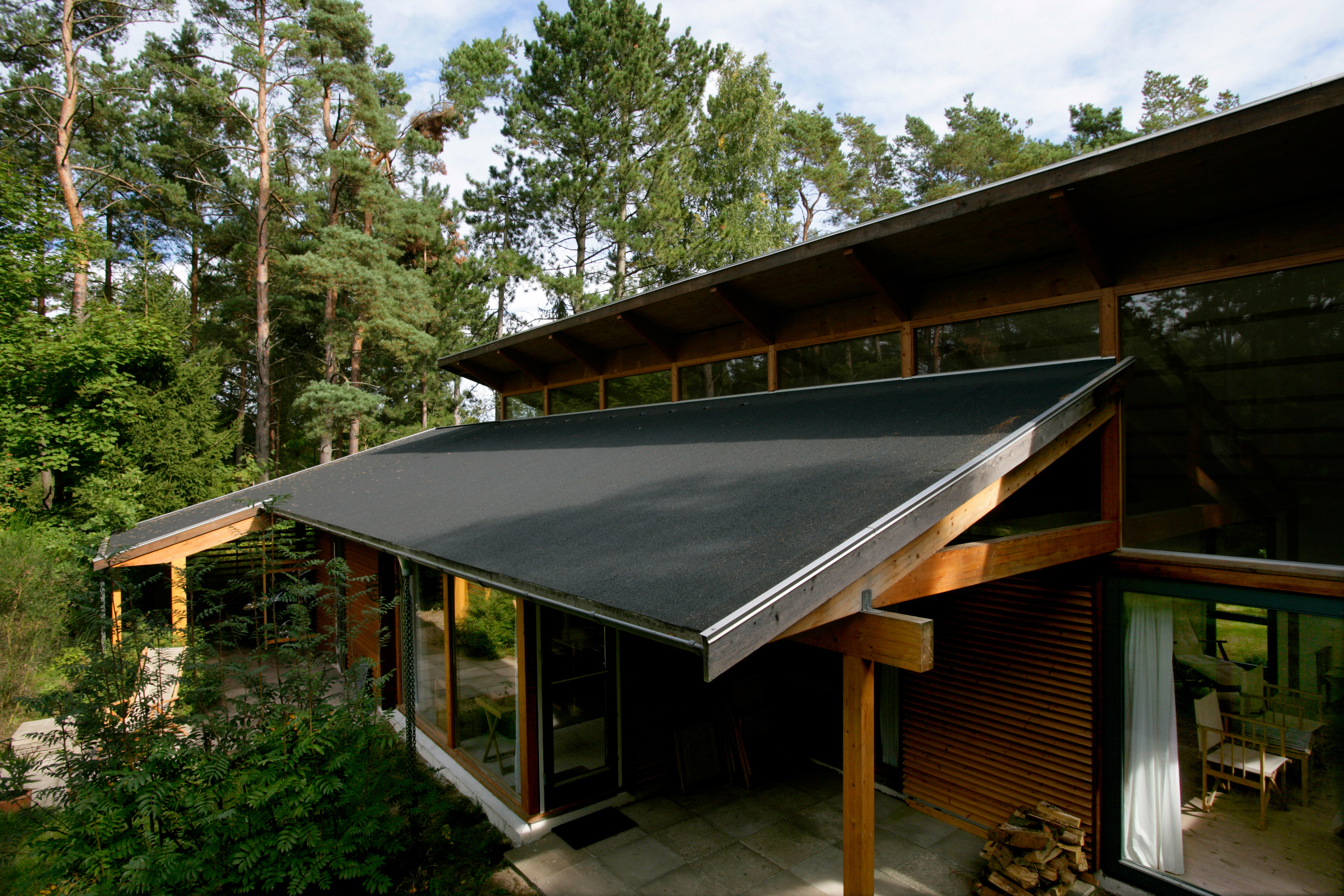 Dette æstetiske, arkitekttegnede sommerhus med en spændende tagkonstruktion i forskudte niveauer er udført med Glatdækning, som giver et enkelt og stilrent udtryk.