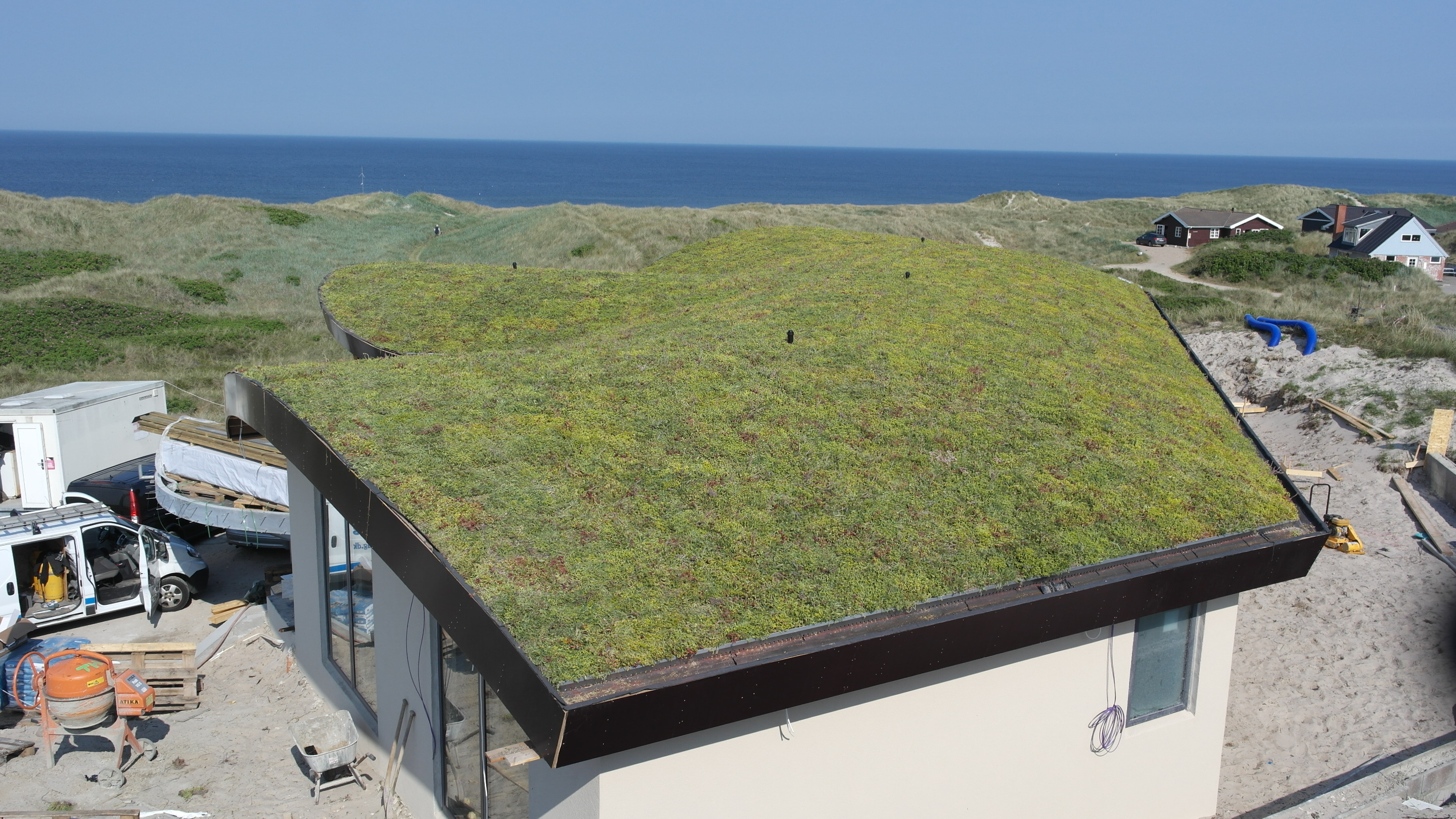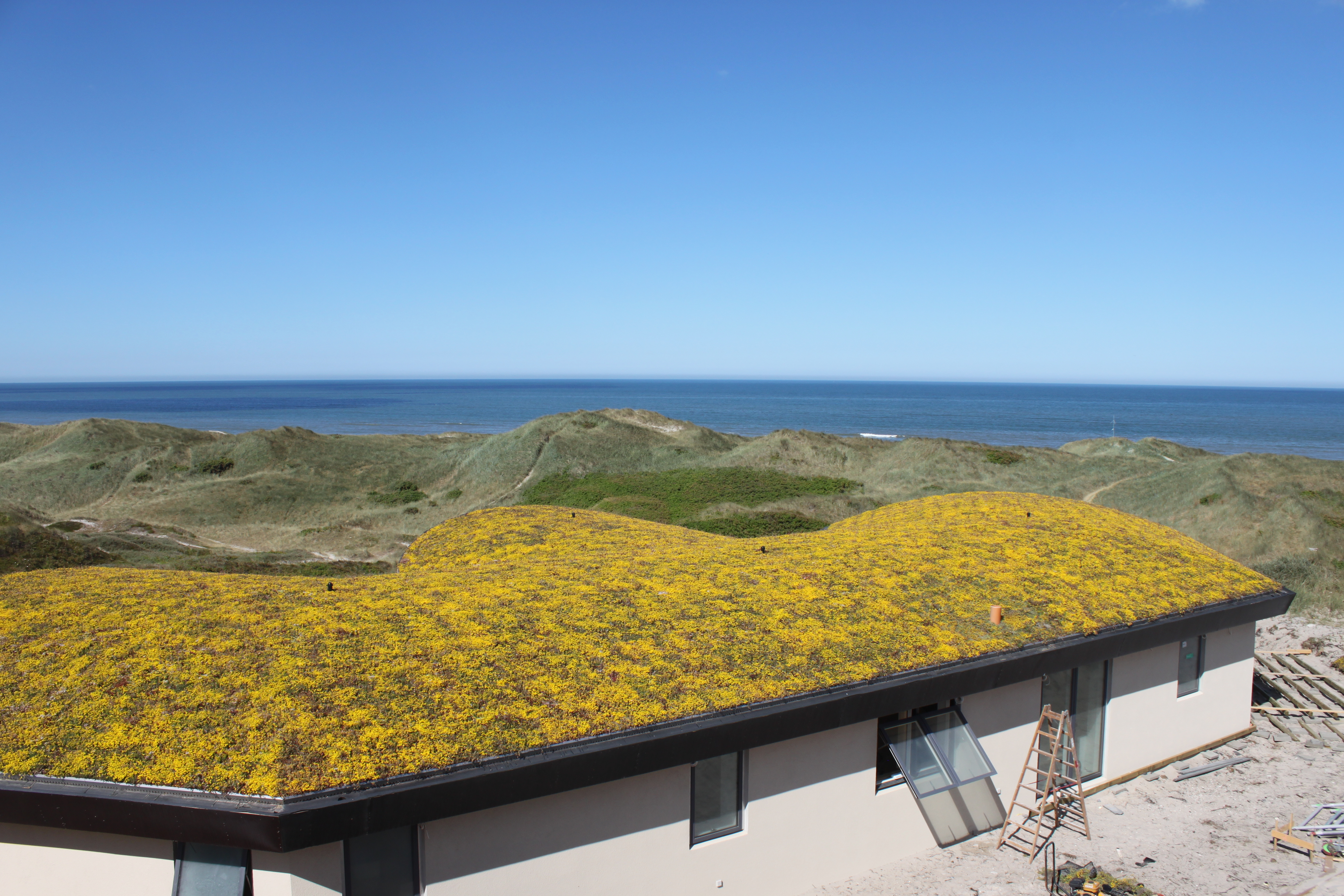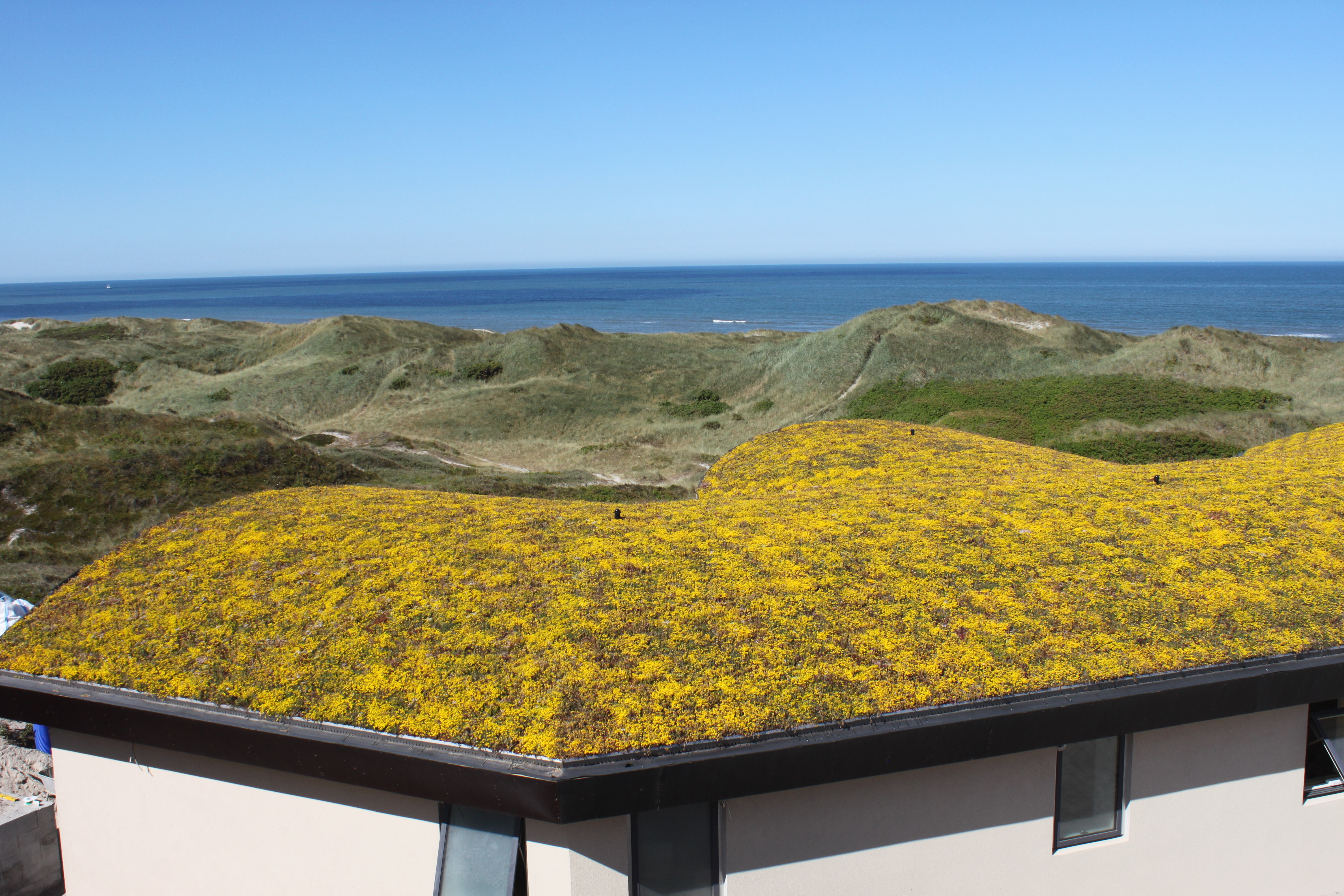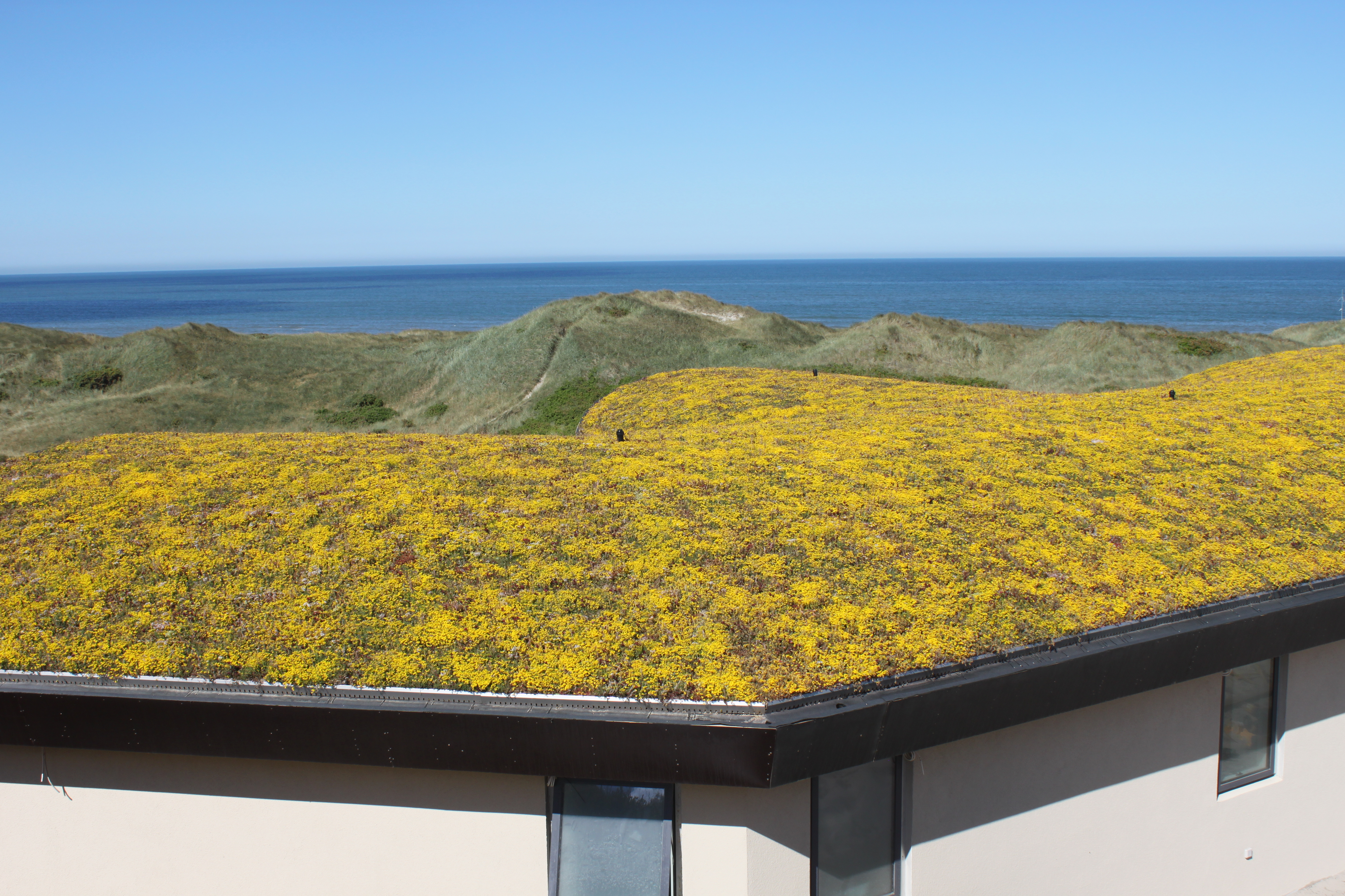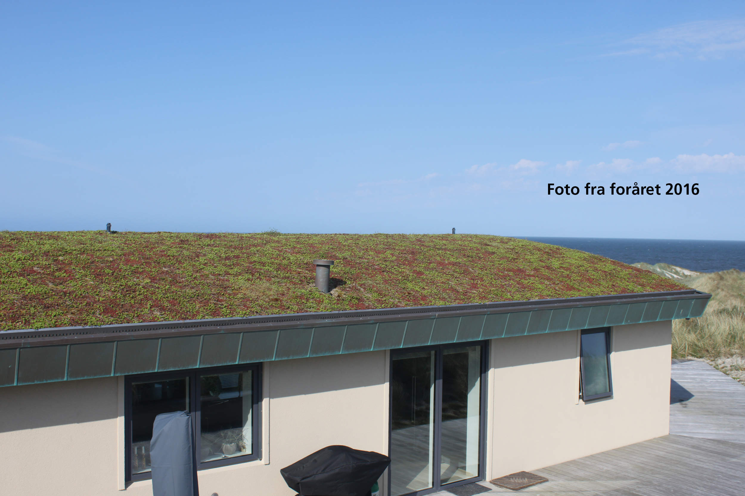 Grønt tag på sommerhus ved Henne Strand