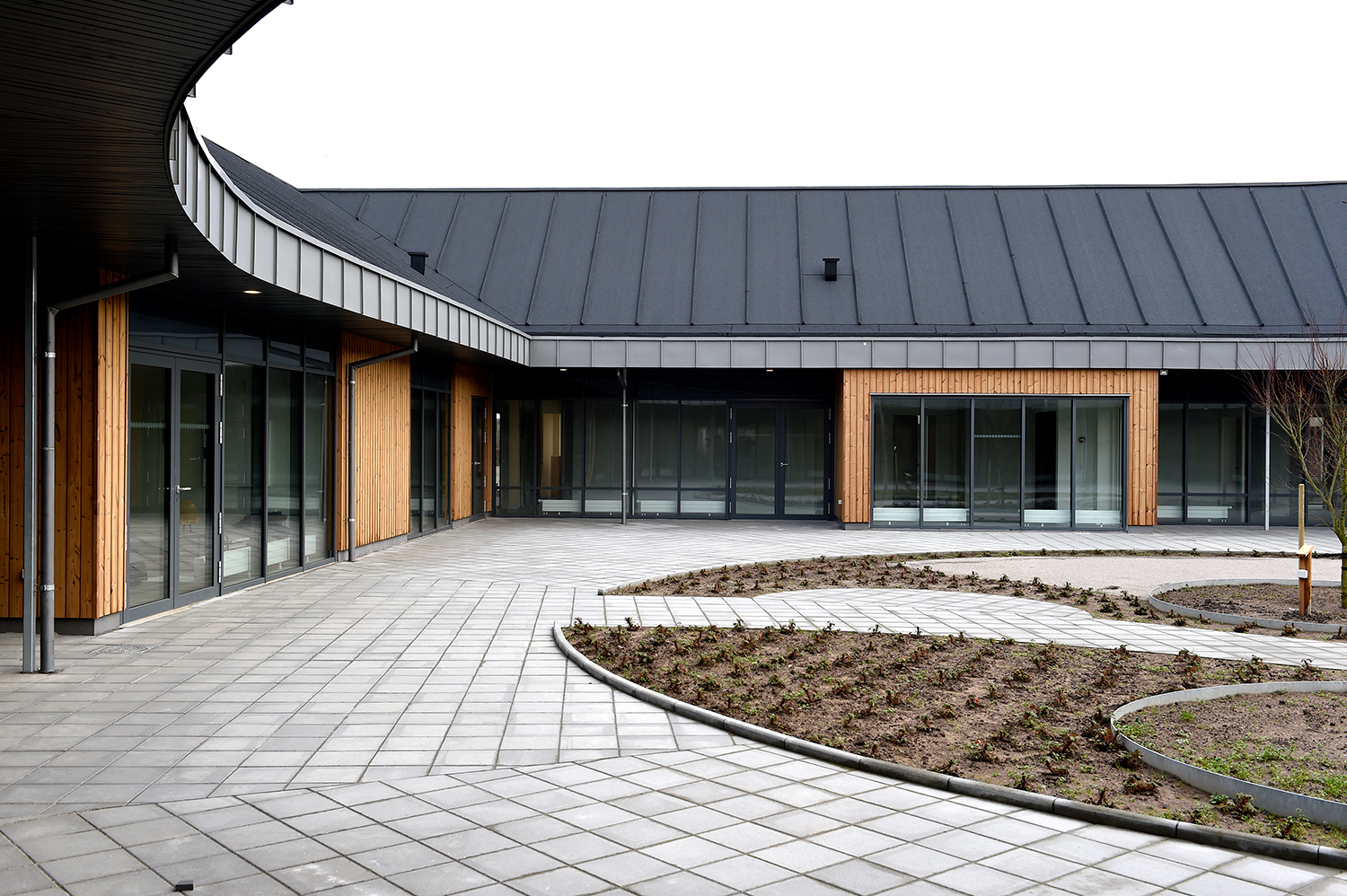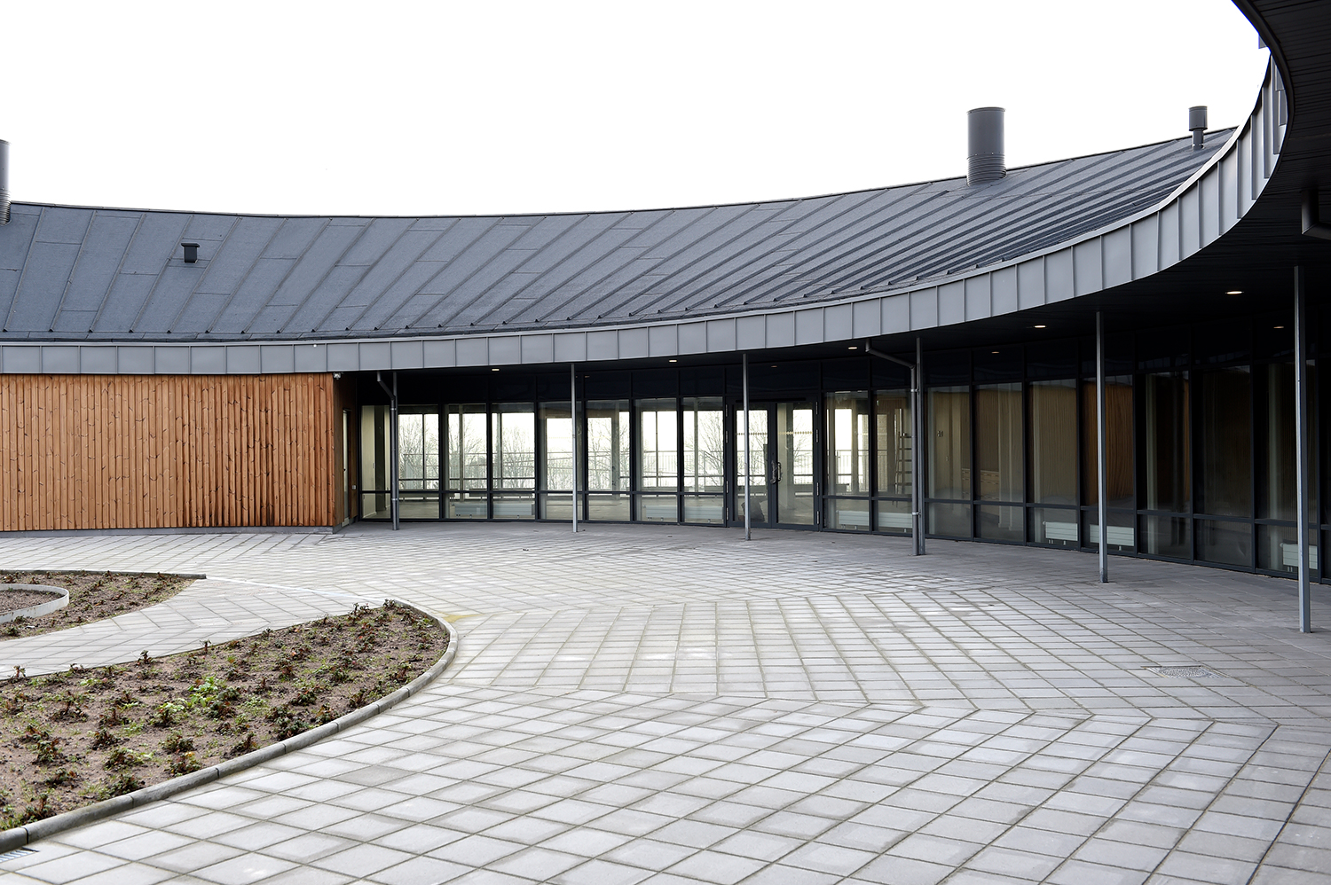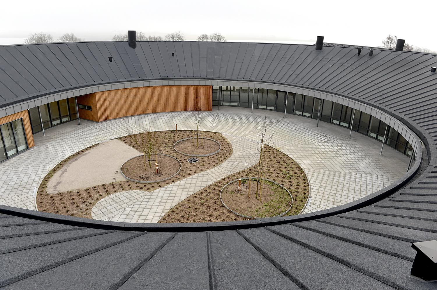 Bygningen åbner sig mod alle verdenshjørner og tilføres hele spektret af dagslyskvaliteter. Centrets cirkelrunde bygningskrop og gårdrummet giver centeret transparens mod de centrale fællesarealer, mens borgerne får ro og privathed.
