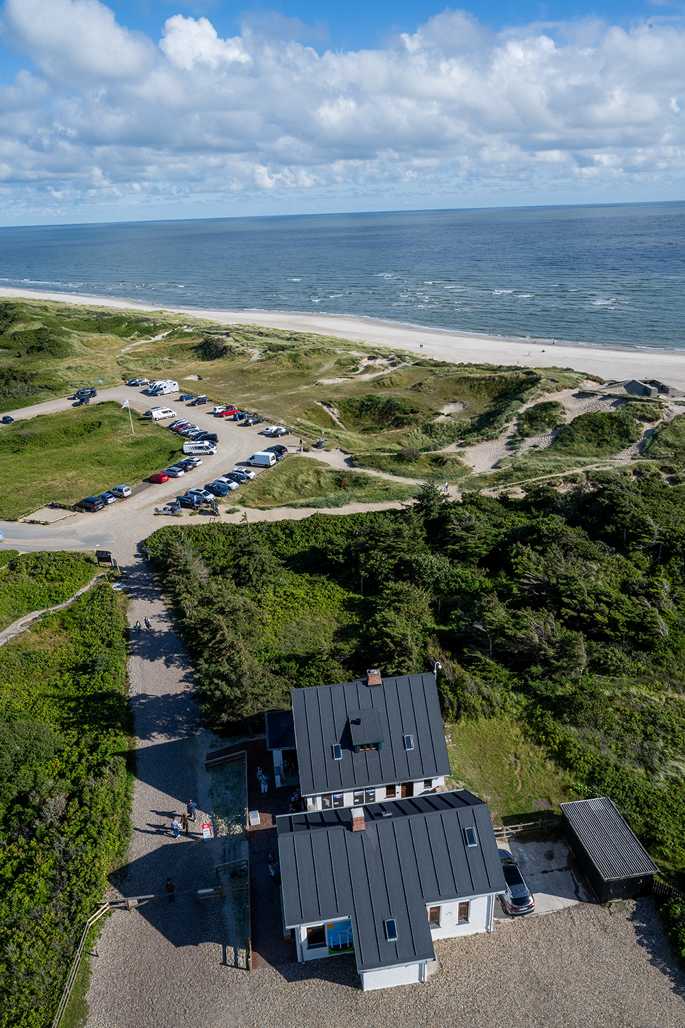 Den gamle fyrmesterbolig ved Blåvandshuk Fyr er blevet renoveret og fungerer nu som besøgscenter. Listedækningen passer til de historiske bygninger og det smukke klitlandskab.