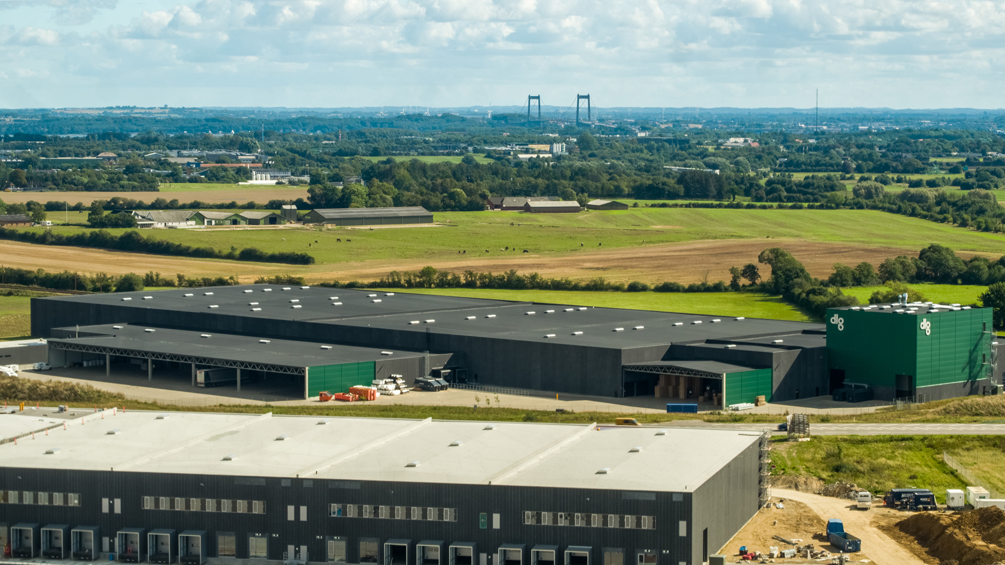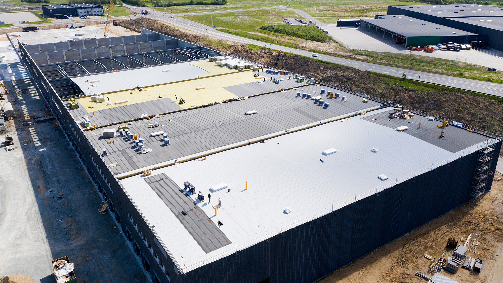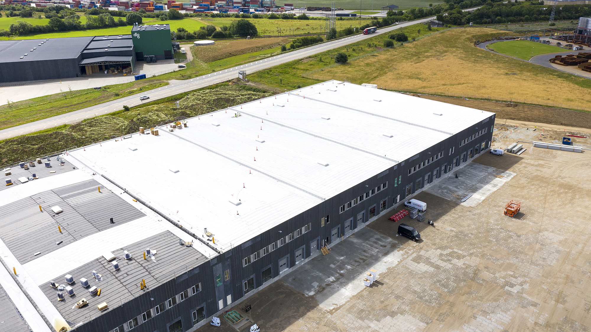 Byggerier har en bæredygtig og grøn profil. Derfor passer NOXOUT-pappen rigtigt godt ind i billedet hos Taulov Dry Port, der samtidig samarbejder med Rambøll om at finde andre grønne tiltag, der på sigt kan føre til en DGNB-certificering for industribyggeri.