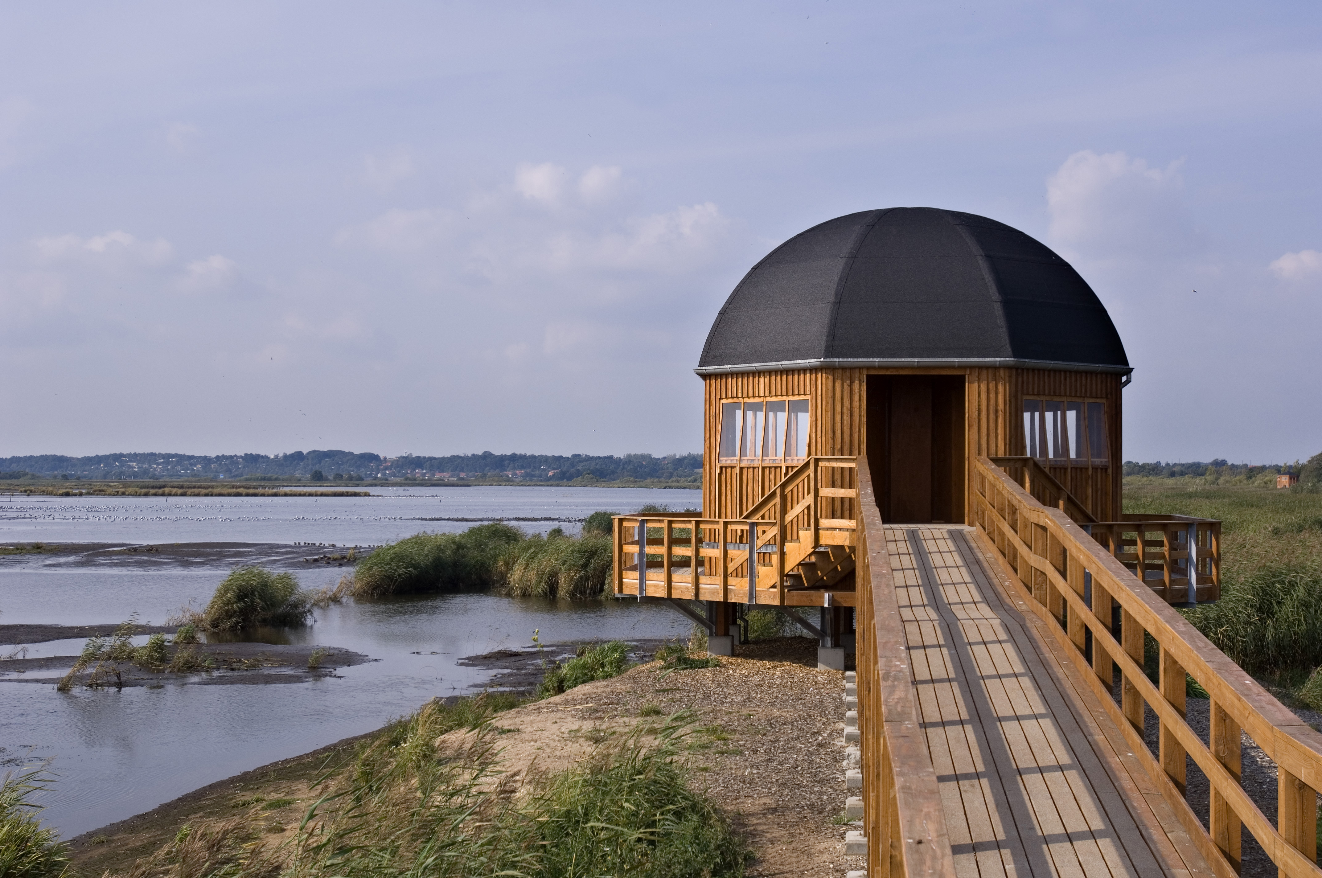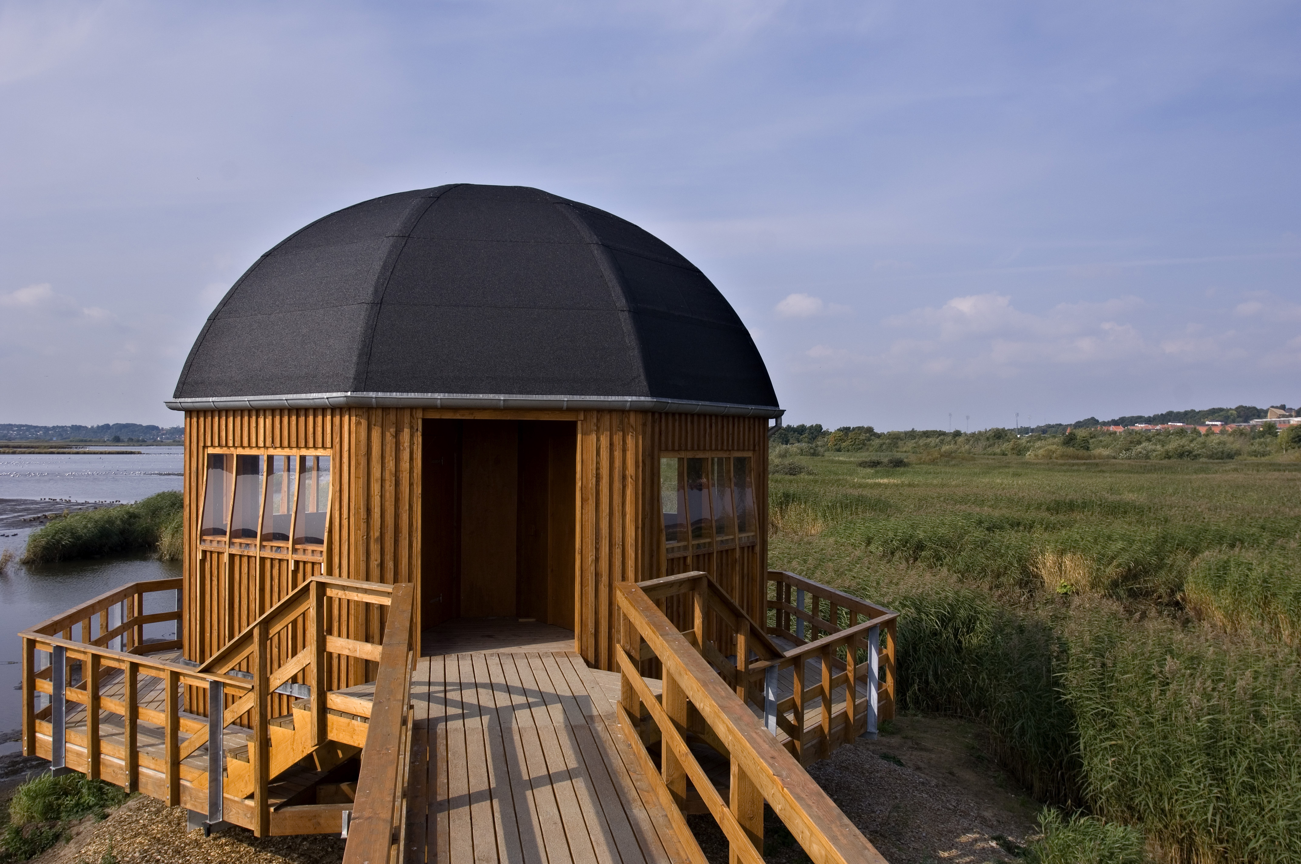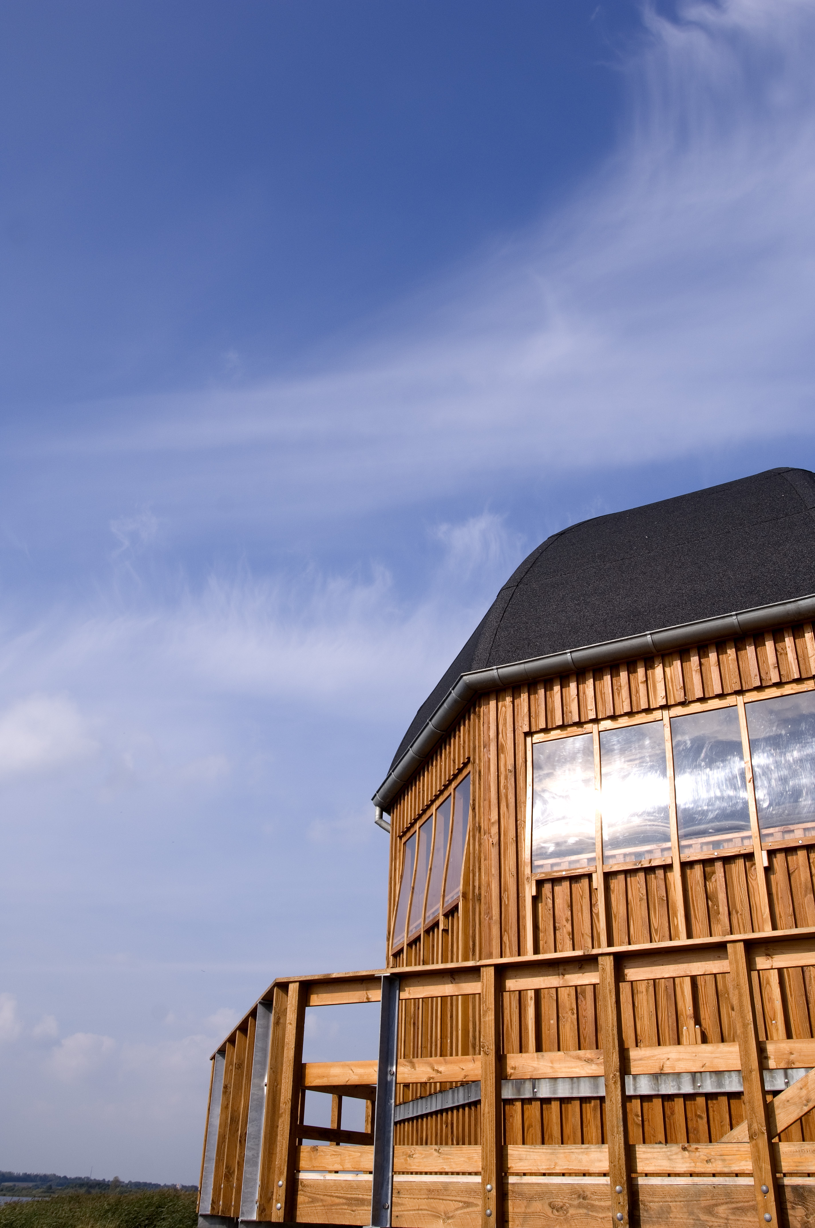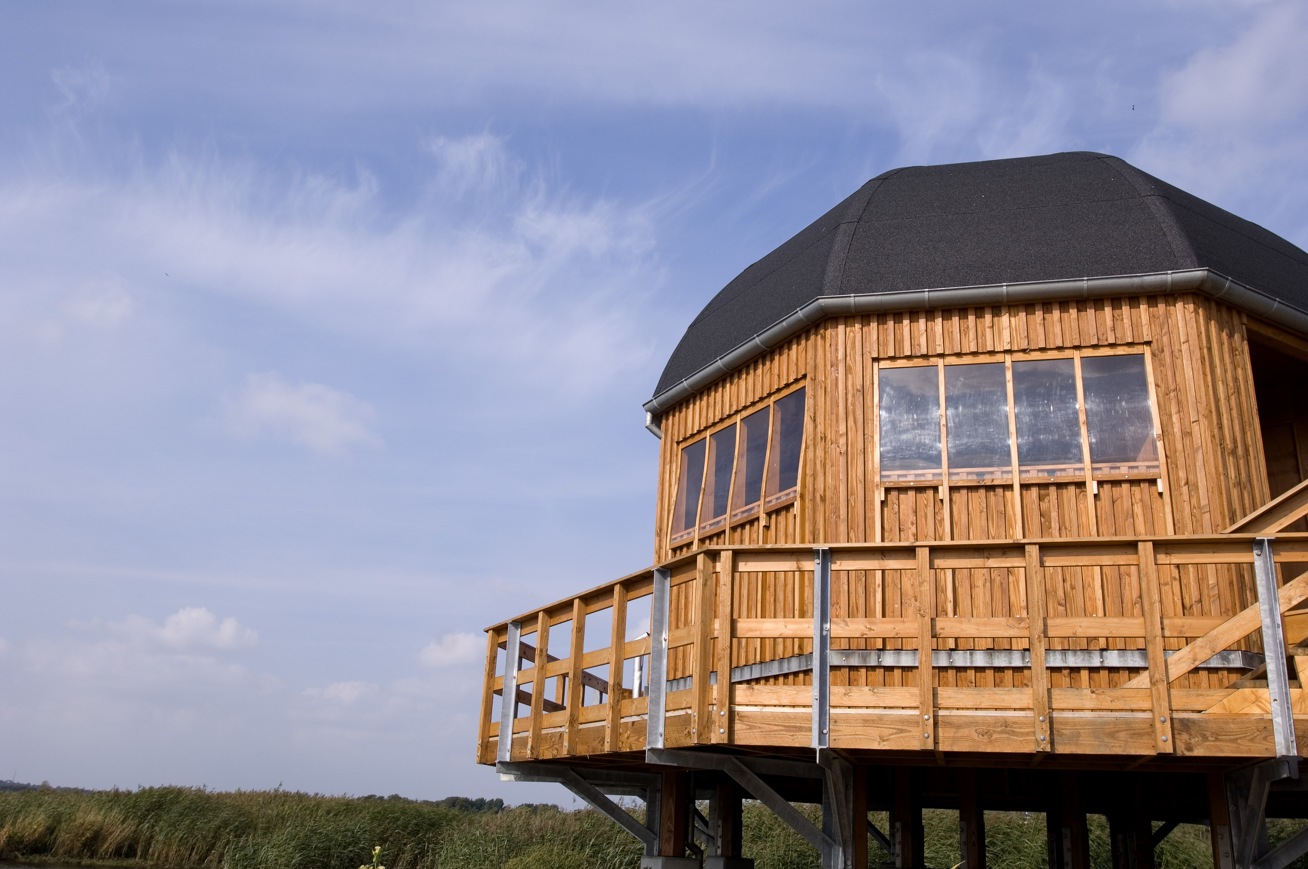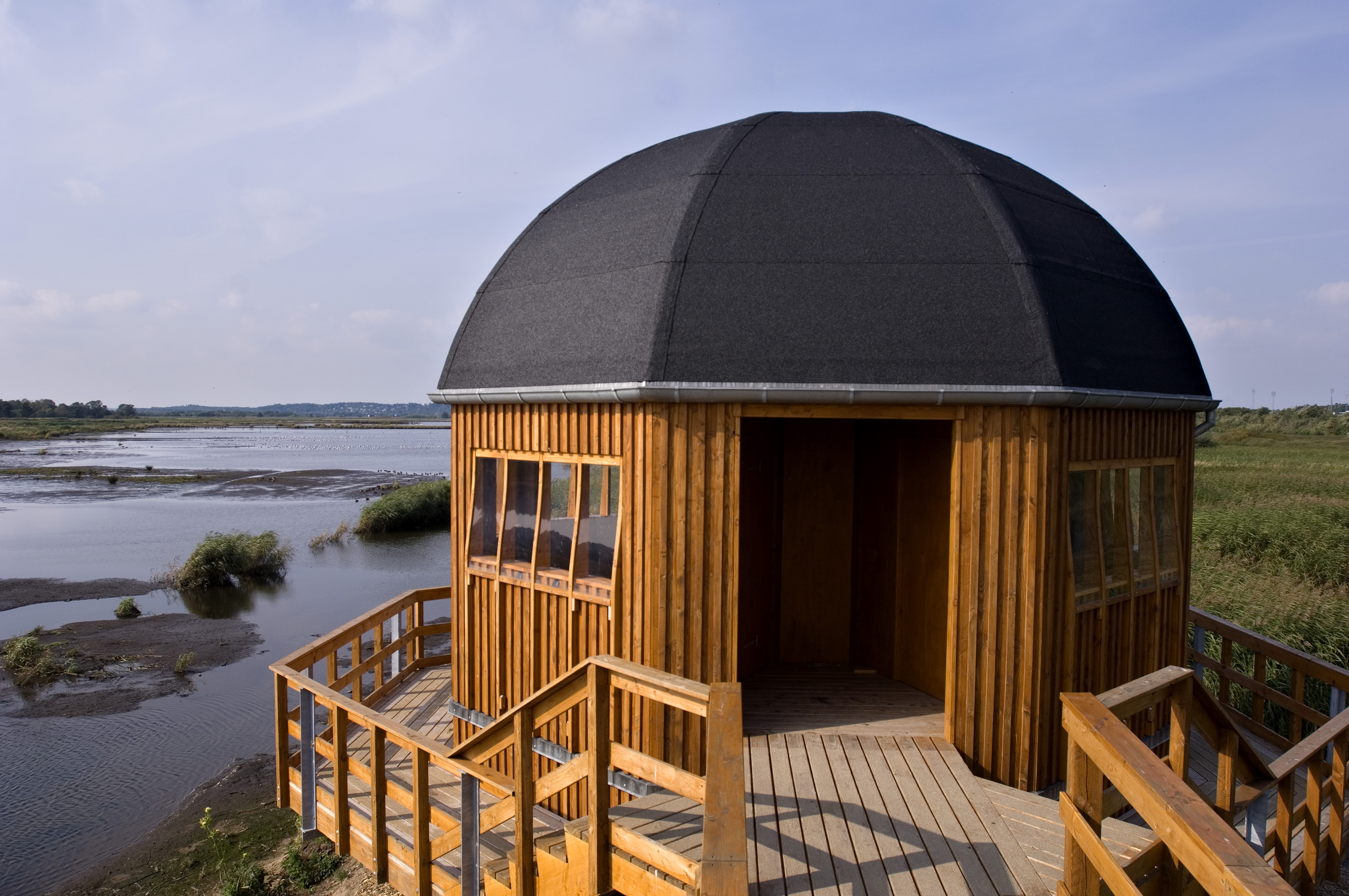 Kuplen på det naturskønne udkigstårn giver udfordring til tagbeklædningen. Her udnyttes tagpappets fleksibilitet, idet det kan formes frit efter den kreative tagkonstruktion.
