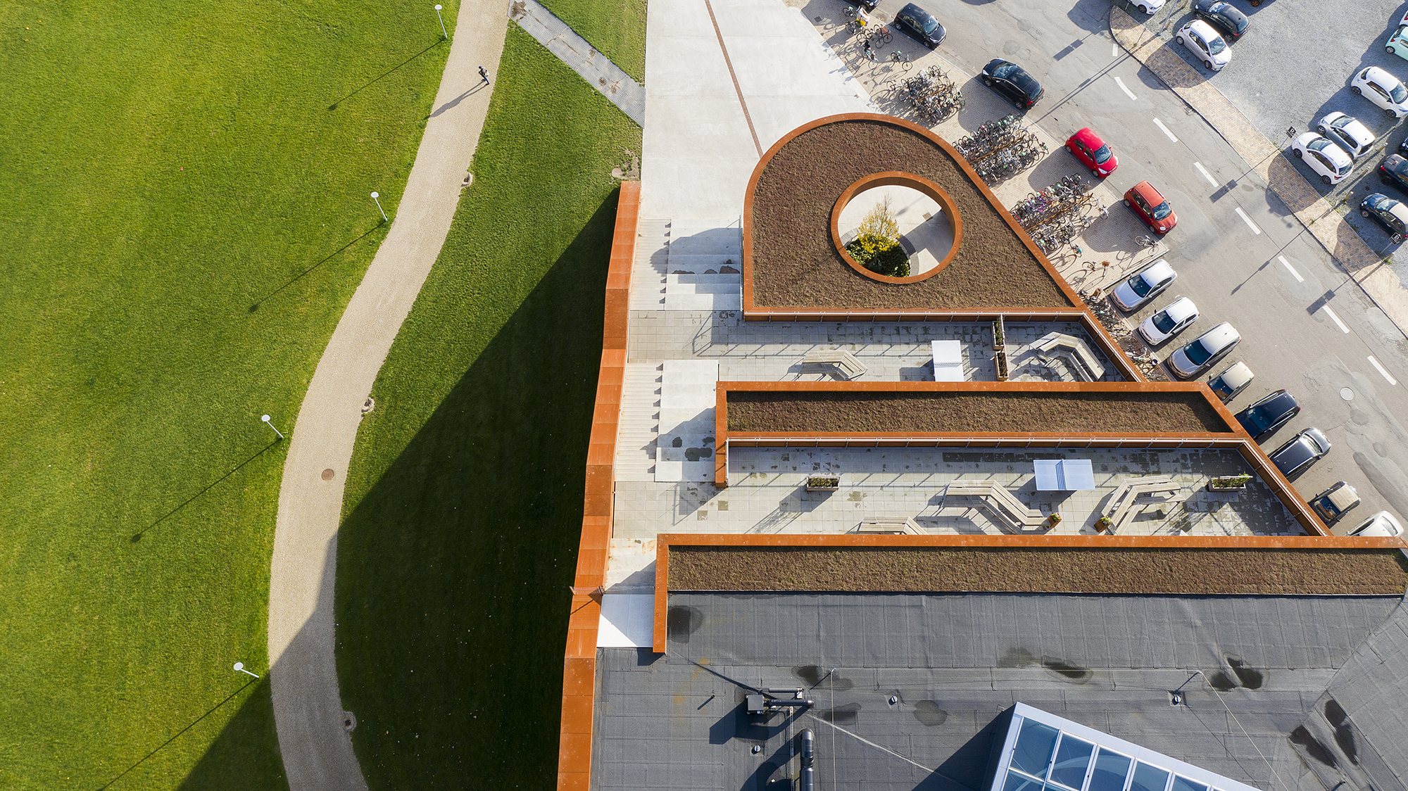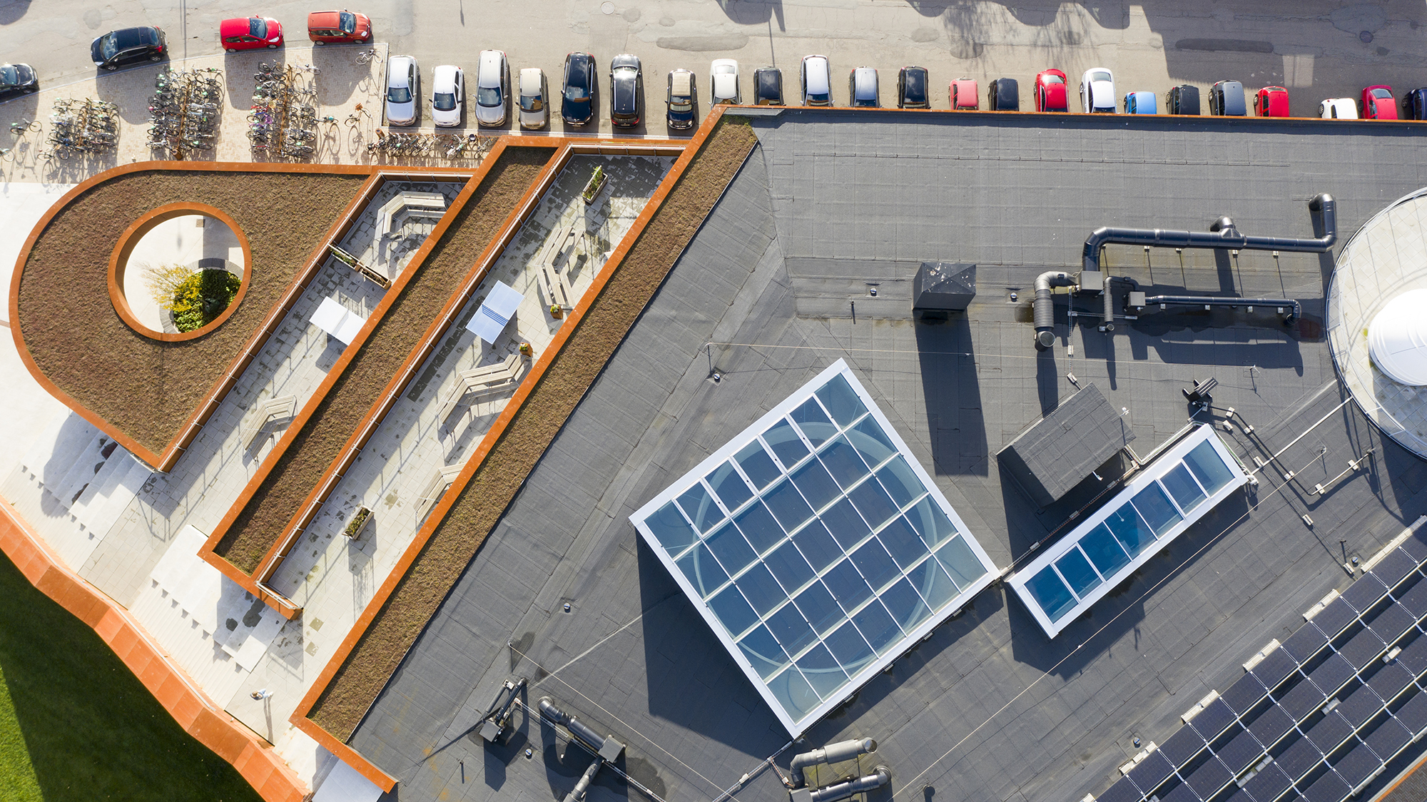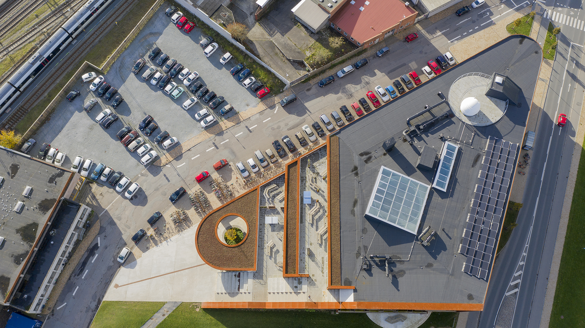 Bygningen kan på trods af sin meget centrale beliggenhed, byde på flere udendørs arealer i form af store tagterrasser, hvor man på hver etage har udsigt til et område med sedumtag.