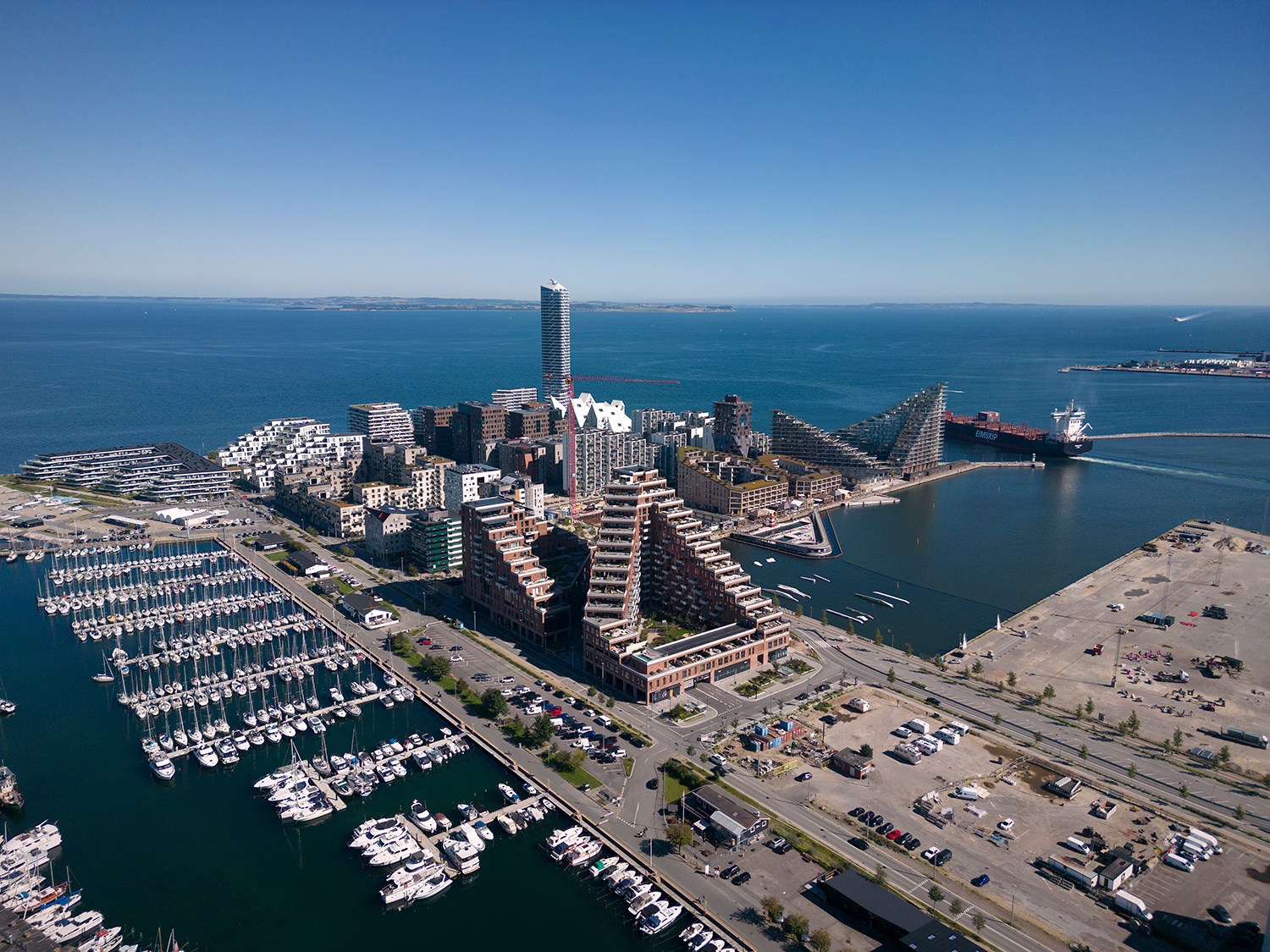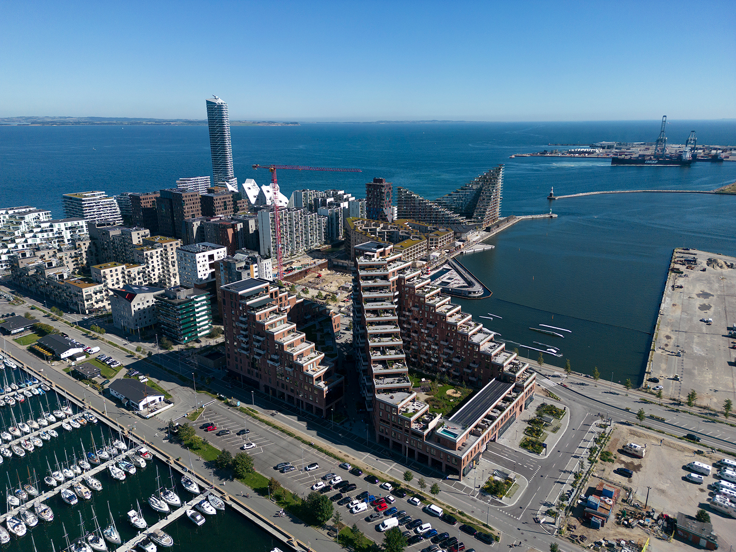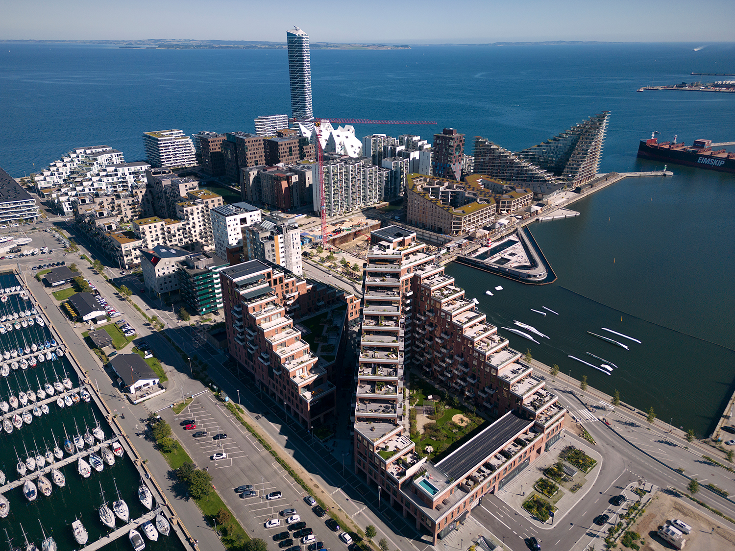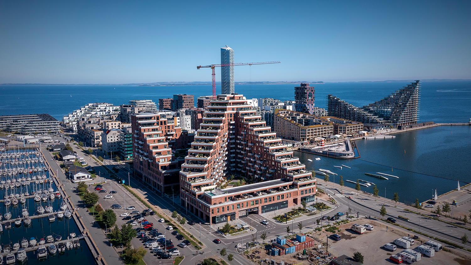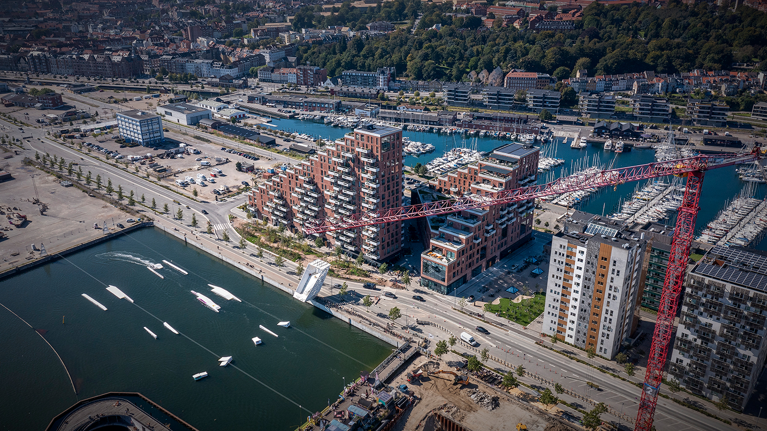 En moderne tolkning af den klassiske teglkarré, der historisk præger Aarhus bymidte. Og en arkitektur, der satser på at bringe et levende byliv til Århus Ø, bl.a. med en markedshal.