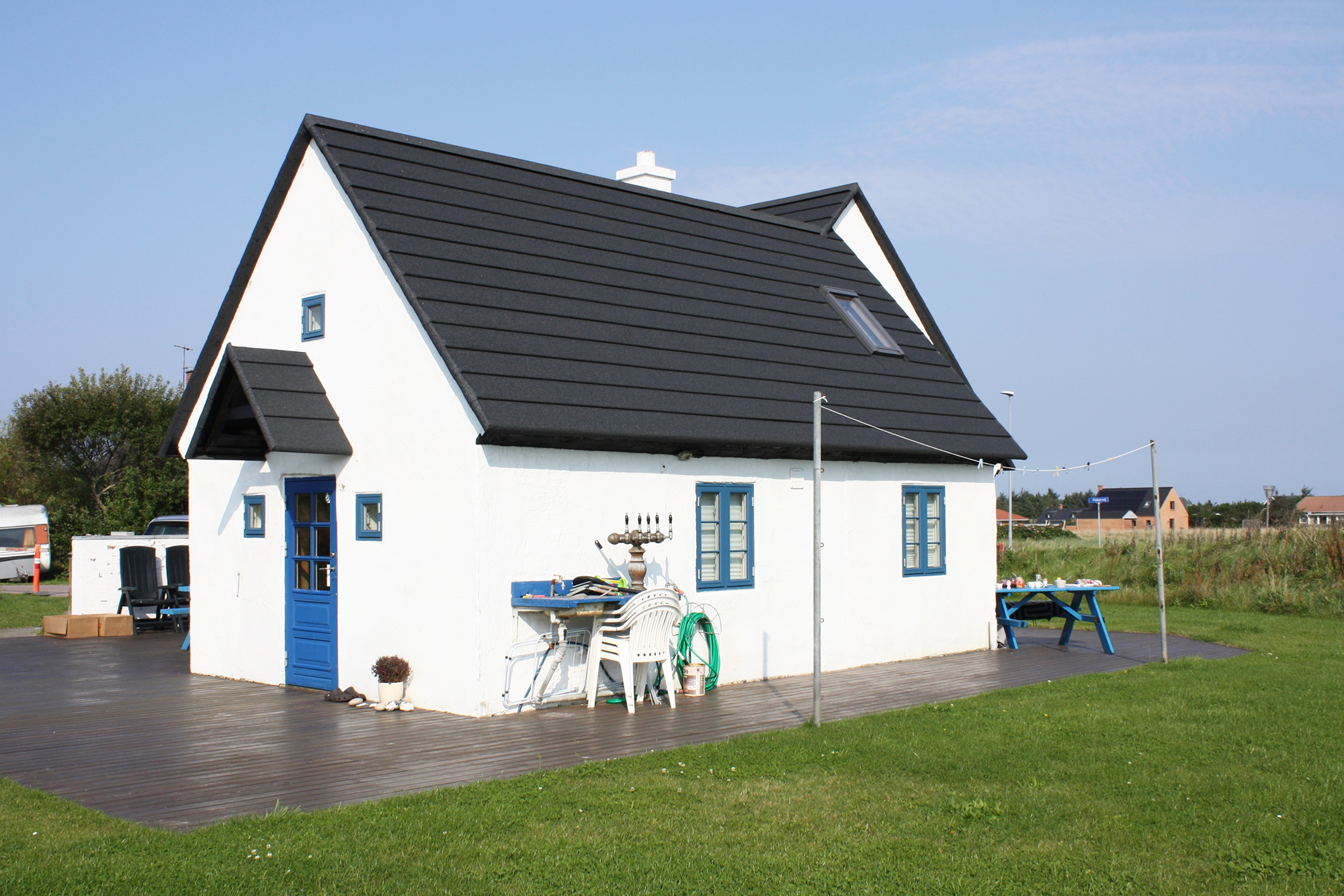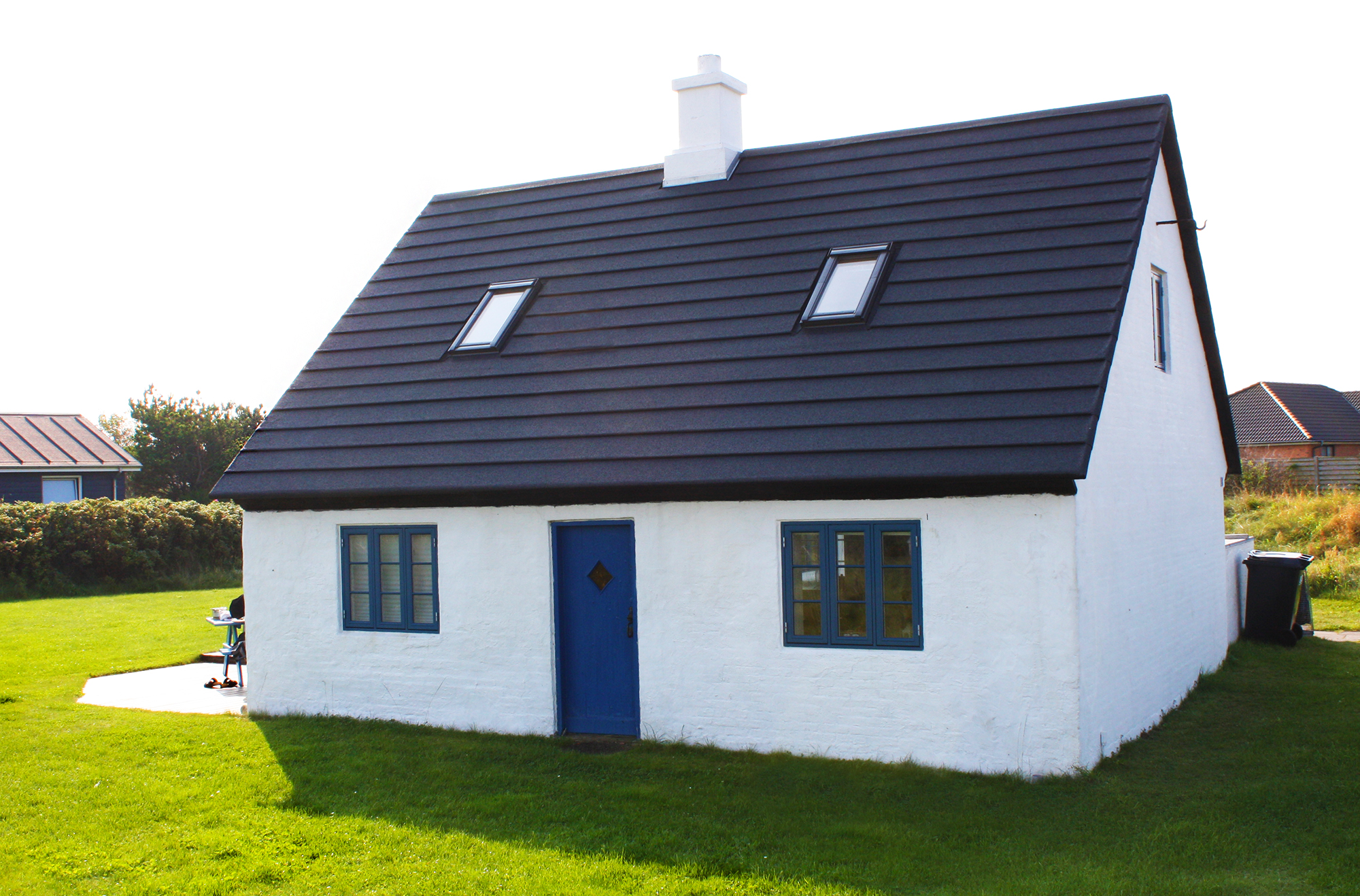 Ud over den nye pladedækning blev fiskerhuset også kalket helt hvidt og fik nye, blå vinduer med sprosser – sådan så huset nemlig ud ”fra fødslen”.