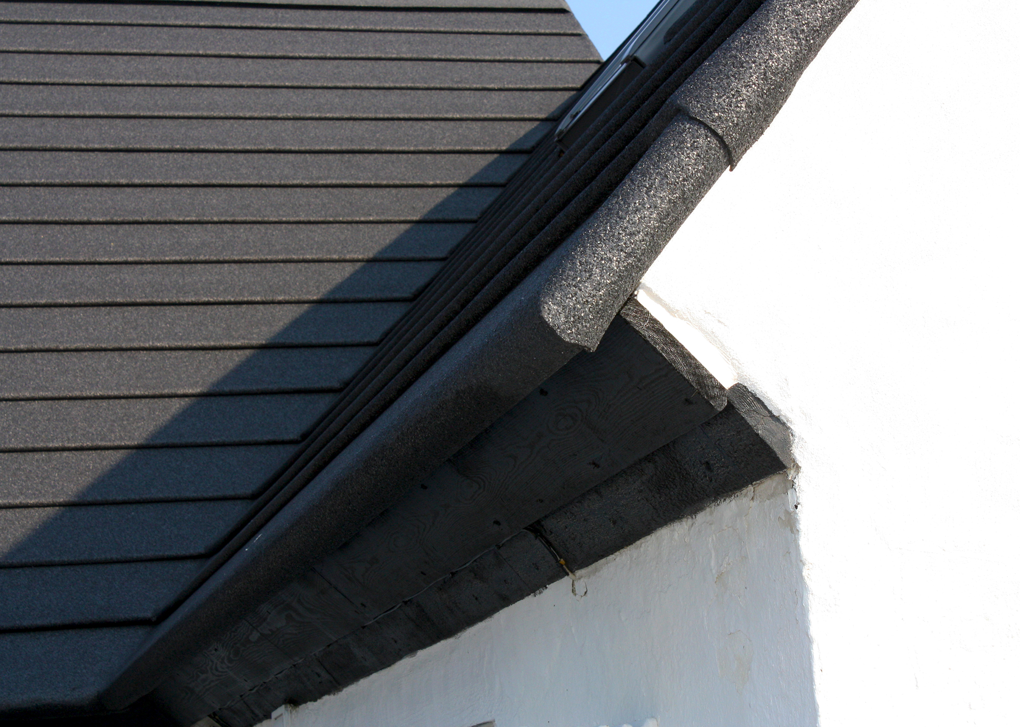 -Nej, det er en usædvanlig løsning, men resultatet er blevet utroligt flot. Huset fremstår virkelig originalt og smukt, og du kan ikke se en eneste samling på taget. Tagpappet slutter helt tæt, også selvom husets to fløje har lidt skæve mål i forhold til hinanden, siger Peter M. Vestergaard.